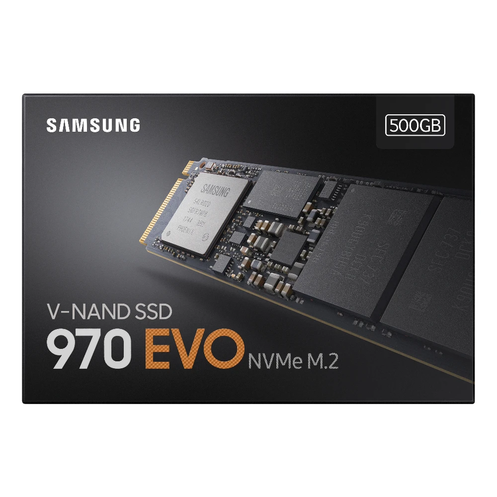 SSD 970 EVO, 500GB, PCIe Gen 3.0 x4, NVMe 1.3, M.2 (2280), 3.16" x 0.09" x 0.87" Samsung 970 EVO. SSD capacity: 500 GB, SSD form factor: M.2, Read speed: 3400 MB/s, Write speed: 2300 MB/s, Component for: PC The SSD that goes further