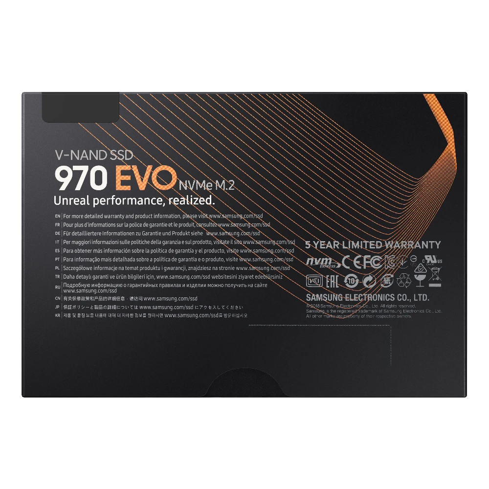 Accelerate into next-gen computing. The Samsung 970 EVO delivers breakthrough speeds, best-in-class reliability, and a broad range of capacity options up to 2TB*. The latest V-NAND, new Phoenix controller, and Intelligent TurboWrite technology enhance high-end gaming and 4K & 3D graphic editing.
