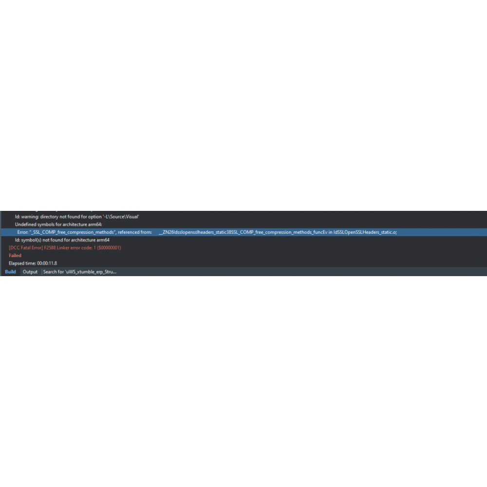 “https://en.delphipraxis.net/topic/3563-ios-libcryptoa-libssla/#:~:text=Error 22_SSL_COMP_free_compression_methods referenced from__ZN26Idsslopensslheaders_static38SSL_COMP_free_compression_methods_funcEv in IdSSLOpenSSLHeaders_static.o symbol(s) not found for architecture arm64”