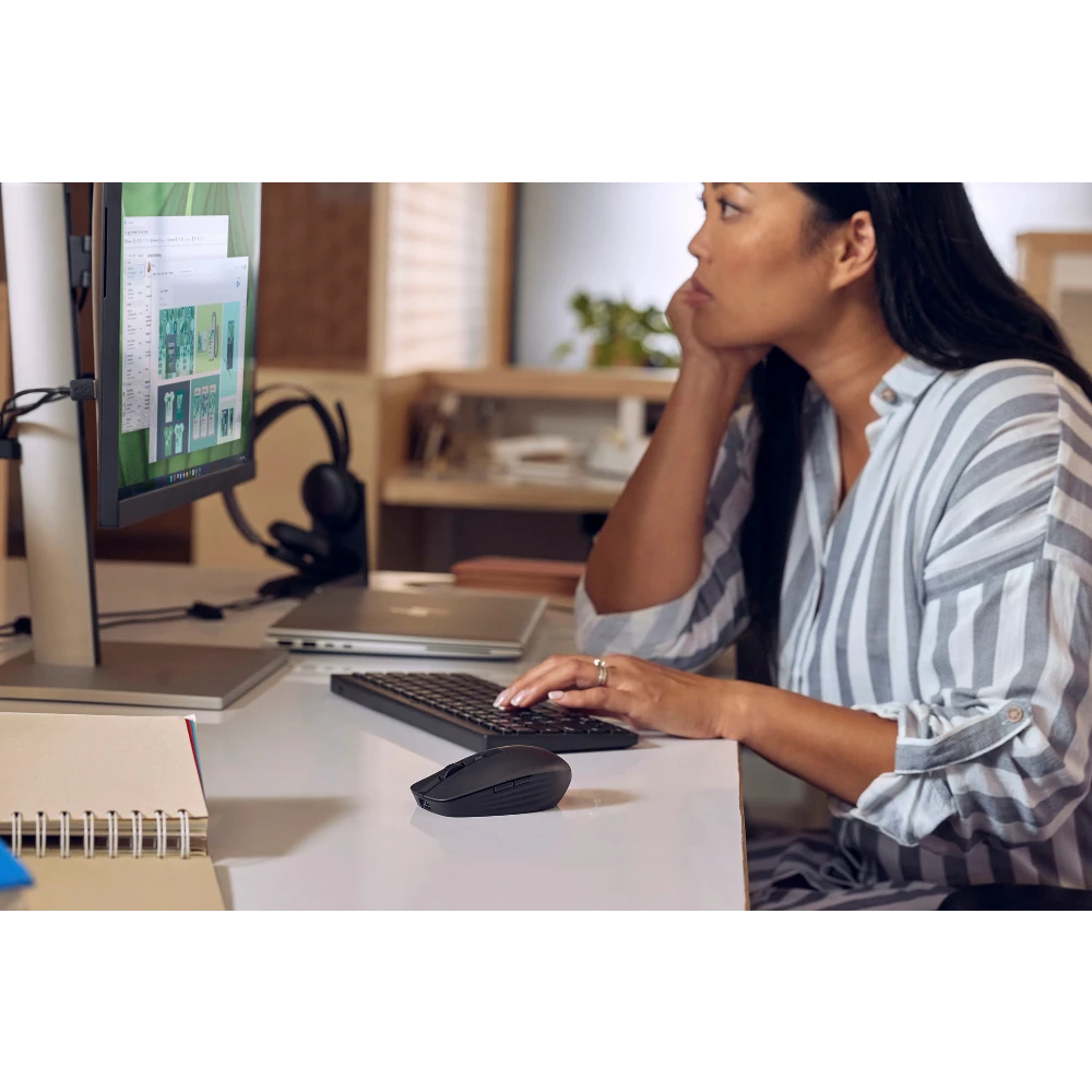 Doesn't it just feel better typing on an external keyboard? This sleek wireless keyboard combines roomy desktop productivity with comfy compact portability for hybrid work. Multi-pair connectivity makes it the perfect companion for your desktop, laptop, tablet, or even phone. Stash it in your laptop bag or backpack for that satisfying typing experience that stays with you.