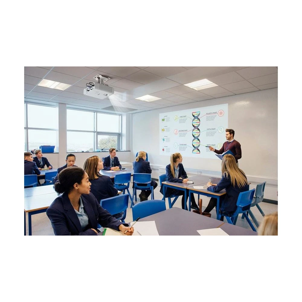 Offers MTR auto power-on function by HDMI video signal detection and an array of connectivity options including Dual HDMI and built-in wireless LAN to stream content from laptops or mobile devices with Screen Mirroring (Miracast) - PIN code support and display dialog username when connected Miracast to projector allows teacher to block student interruption while teacher is projecting. USB power supply (2A) for easy smart stick connection. Compatible with iProjection software for easy connectivity with mobile devices and content sharing.