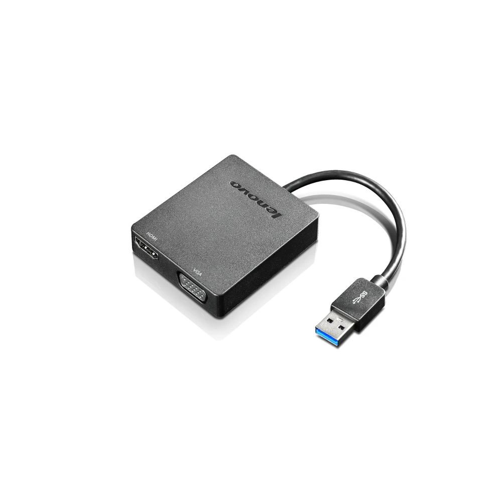 The Lenovo Universal USB 3.0 to VGA/HDMI Adapter turns an available USB 3.0 port into a display port offering either VGA or HDMI output with support for high-definition 1080p and with audio (from HDMI port only).