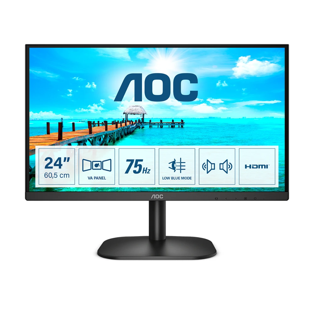 The 24B2XDAM from the B2 Series employs a 23.8" Full HD VA panel offering wide viewing angles, accurate and lively colours plus flexible connectivity. It features a slim profile and a 3-sides borderless panel for seamless multi monitor setups. Say goodbye to eyestrain thanks to AOC's LowBlue and FlickerFree technologies.