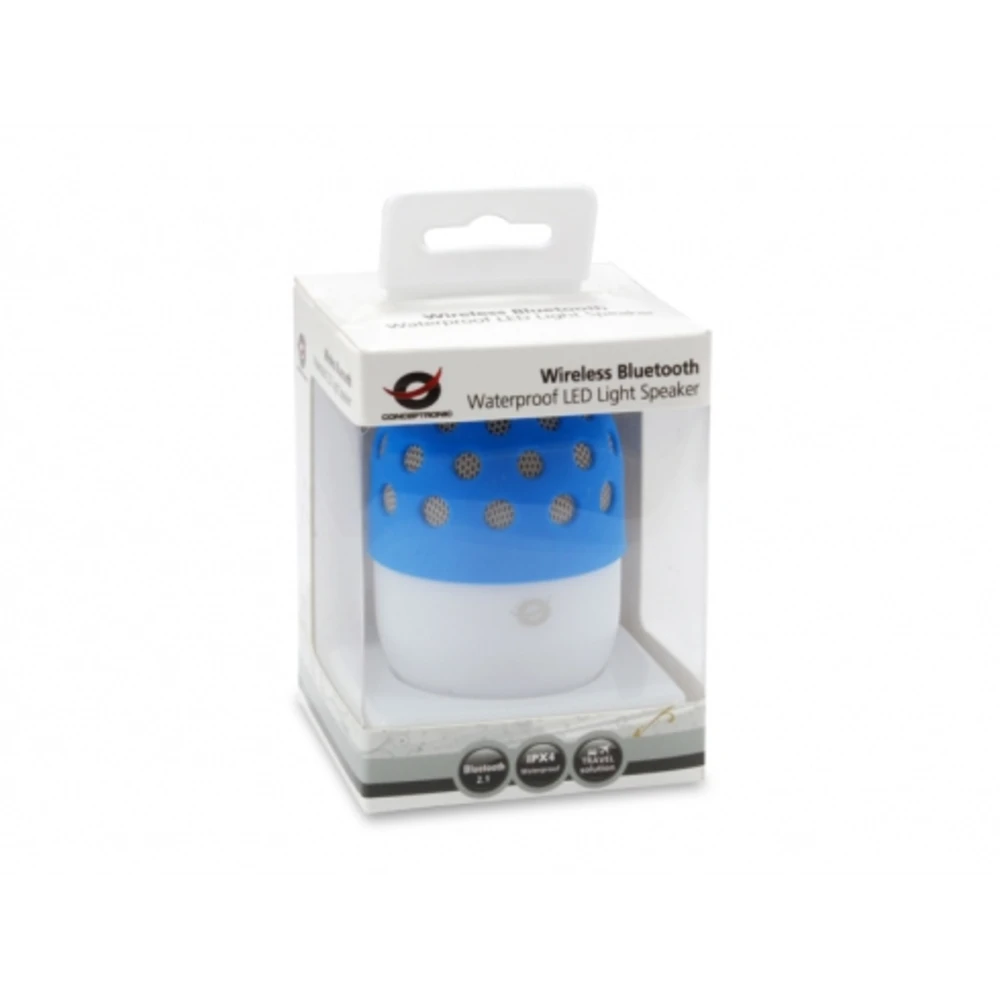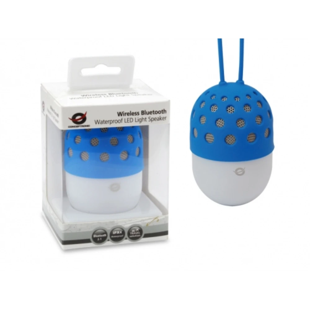 3W RMS, Bluetooth 2.1, 100Hz - 20kHz, 450mAh, IPX4 The Conceptronic Wireless Bluetooth Waterproof LED Light Speaker is a funky Bluetooth multimedia device which connects to any Bluetooth mobile phone, PDA, laptop or PC. Designed with an easy-carry handle, simply hang the speaker up high and experience 360? surround sound stereo music. Create a variety of atmospheres by changing to different LED flash modes and match the light to your music. With waterproof housing, the speaker is perfect for outdoor activities such as camping, partying, barbeques at the beach or wherever life takes you.