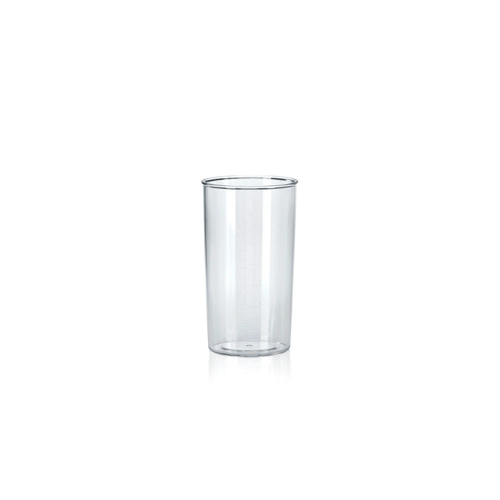 The 600 ml plastic beaker is BPA free and features ml and floz measurement markings.