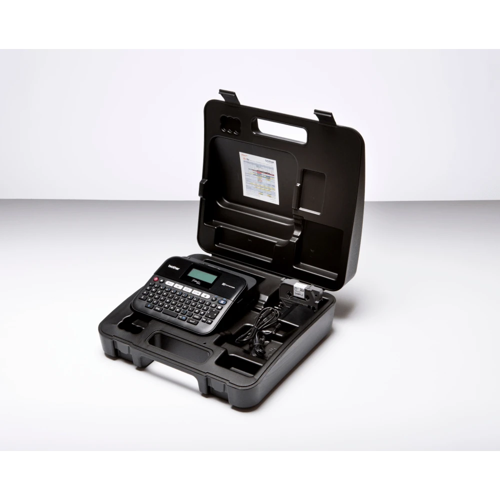 With the PT-D450VP, you can quickly generate labels up to 18mm wide, either using the printer?s own PC-style ?QWERTY? keyboard and high resolution backlit display to create them direct or sending your designs via your PC. It also comes complete with its own handy carry case, 18mm black on white label tape and adapter.