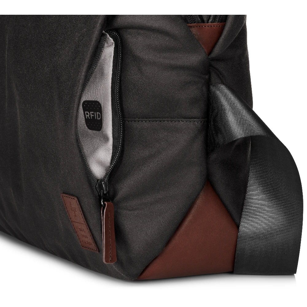 Commute through the urban jungle with a topload that provides style and security for your gadgets and gear. The elegantly-crafted water-resistant waxed canvas exterior, padded laptop compartment for protection, and dual-purpose pocket that converts into a trolley strap, allow you to travel with ease.