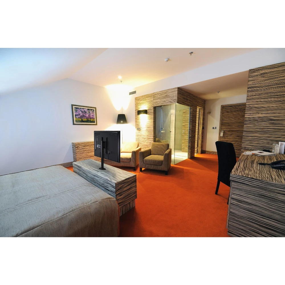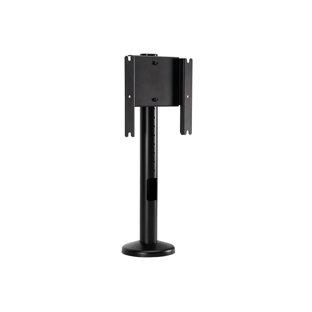 Tabletop TV Swivel Mount For 32" to 47" (81-119cm) Flat Panel TVs with VESA 200 x 100 and 200 x 200mm mounting hole pattern Peerless HP447. Maximum weight capacity: 34 kg, Minimum screen size: 81.3 cm (32"), Maximum screen size: 119.4 cm (47"), Minimum VESA mount: 200 x 100 mm, Maximum VESA mount: 200 x 200 mm. Height adjustment range: 342 - 626 mm, Swivel angle range: 0 - 360°. Product colour: Black The HP447 series flat-panel Tabletop TV Swivel Mount offers a secure, functional and sleek tabletop surface mount for hospitality applications. Designed to seamlessly connect to a variety of flat panel screen models while its deeper adaptor plate allows for easy access to cable input connections. The built-in adaptor plate is VESA® 200 x 100 and 200 x 200mm compliant and comes with security screws to deter tampering and theft. The mount provides more than just aesthetics and theft deterrence with its swivel range from 0º to 360º it delivers virtually any viewing angle within its diameter. Completing the package is the mounts’ decorative base and internal cable management that give it a clean, clutter-free appearance.