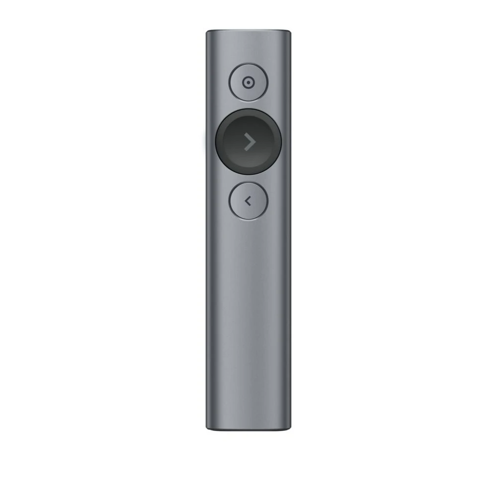 Spotlight™ Presentation Remote Logitech Spotlight™ Presentation Remote. Wireless receiver interface: USB, Wireless technology: Bluetooth/RF, Receiver type: Mini receiver. Product colour: Grey, Presenter functions: Remote control, Material: Aluminium, Plastic. Battery technology: Lithium Polymer (LiPo), Battery capacity: 85 mAh, Charging time: 60 min. Windows operating systems supported: Windows 10, Windows 11. Receiver width: 1.72 cm, Receiver depth: 6.8 mm, Receiver height: 4.04 cm Logitech Spotlight sets a whole new standard in presentation control. Navigate slides and interact with on-screen content from up to 30 meters (100 feet) away.1