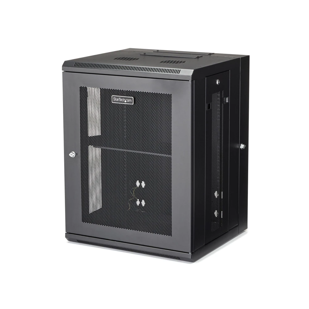 StarTech.com 15U 19" Wall Mount Network Cabinet - 16" Deep Hinged Locking IT Network Switch Depth Enclosure - Assembled Vented Computer Equipment Data Rack w/Shelf & Flexible Side Panels. Type: Wall mounted rack, Rack capacity: 15U, Maximum weight capacity: 90 kg, Cable management. Weight: 39.6 kg. Product colour: Black