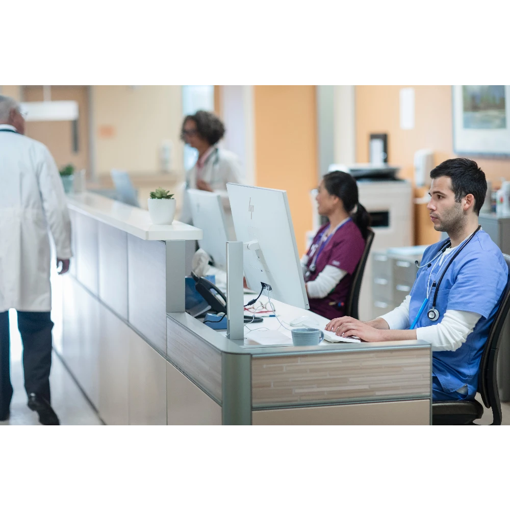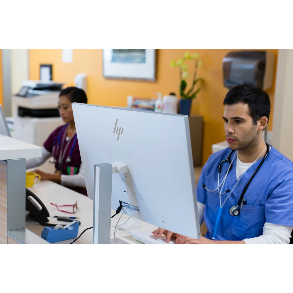 Deploy a display designed specifically for clinicians with the HP Healthcare Edition HC270cr. It’s built for easy, repeatable sanitization[1], DICOM Part 14 compliant for viewing medical images, and enhanced with single sign-on authentication support and collaboration tools for telemedicine.