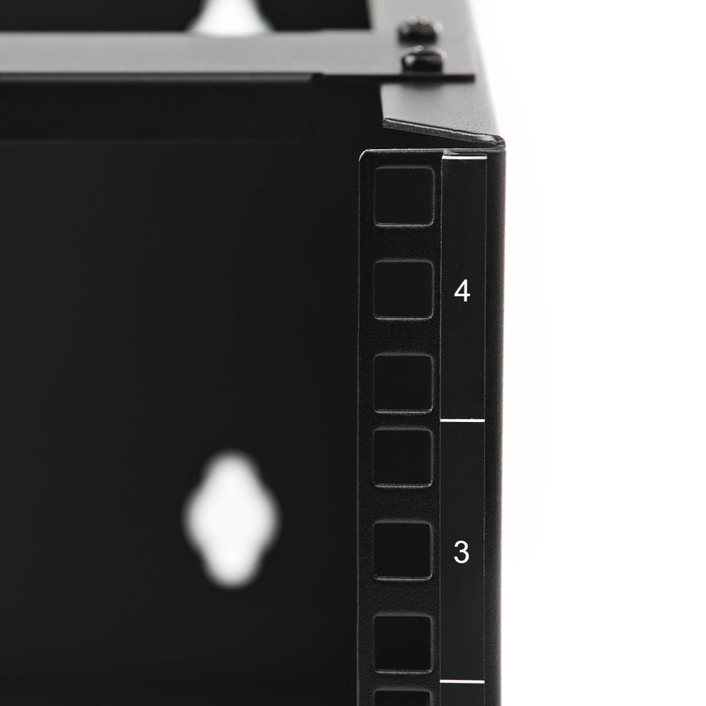 StarTech.com 4U Wall Mount Network Rack - 14 Inch Deep (Low Profile) - 19" Patch Panel Bracket for Shallow Server and IT Equipment, Network Switches - 44lbs/20kg Weight Capacity, Black (WALLMOUNT4) StarTech.com 4U Wall Mount Network Rack - 14 Inch Deep (Low Profile) - 19" Patch Panel Bracket for Shallow Server and IT Equipment, Network Switches - 44lbs/20kg Weight Capacity, Black. Type: Wall mounted rack, Rack capacity: 4U, Maximum weight capacity: 20 kg, Cable management. Weight: 5 kg. Product colour: Black - 4U wall mount rack (19 inch wide) has a max. mounting depth of 14" [35 cm] and a max. weight capacity of 44lbs [20kg] - Wall mounted patch panel bracket for networking equipment has pre-drilled holes 16" apart for standard drywall framework - Incl. anchors/screws to install bracket to the wall | Incl. equipment mounting hardware - Durable wallmount rack made of cold rolled steel - Rear cable routing access to organize cables in network closet/server room - StarTech.com Lifetime Warranty Mount networking equipment and shallow rackmount devices with this 4U wall-mountable rackThe 4U 13.78in. (35cm) deep wall-mounting bracket for patch panels and network equipment, delivers a sturdy and dependable equipment storage option, allowing you to wall mount data/IT equipment up to ta total of 44lbs. (20kg). It's the perfect solution for areas where space is at a premium like small office/home office environments or spaces with limited server room because it doesn't take up any floor space.Sturdy Construction & Easy InstallationThe mounting bracket features an all-steel design and is suitable for mounting patch panels, or other slim 19in rack equipment to a wall, and to organize cabling or equipment in your network closet, wiring closet, back office or IDF. The sturdy steel construction is especially helpful for durability in harsh environments. The open frame wall rack's mounting holes are positioned 16in. apart, matching typical drywall construction framework to ensure simple and secure wall-stud anchoring.Includes HardwareCage nuts and screws are included with the wall-mount bracket, to save you the hassle of sourcing separate mounting hardware. The bracket is ideal for mounting equipment 12" or less in depth to ensure there is room for cabling.WALLMOUNT4 is backed by a StarTech.com lifetime warranty and free lifetime technical support.The StarTech.com Advantage