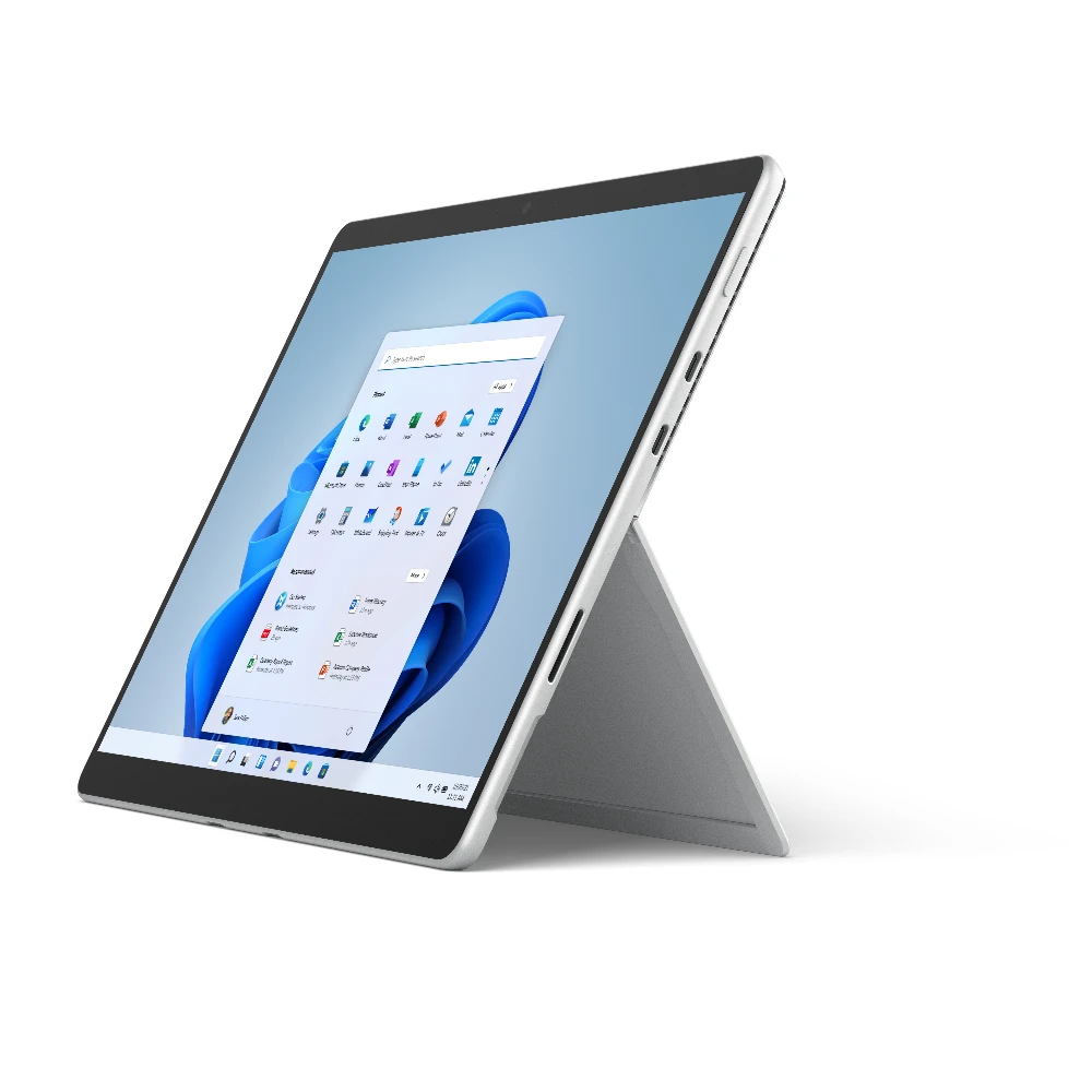 Microsoft Surface Pro 8. Display diagonal: 33 cm (13"), Display resolution: 2880 x 1920 pixels. Internal storage capacity: 256 GB. Processor family: Intel? Core? i5, Processor model: i5-1145G7. Internal memory: 16 GB. Rear camera resolution (numeric): 10 MP, Rear camera type: Single camera, Front camera resolution (numeric): 5 MP, Front camera. Top Wi-Fi standard: Wi-Fi 6 (802.11ax). Operating system installed: Windows 10 Pro. Product colour: Platinum