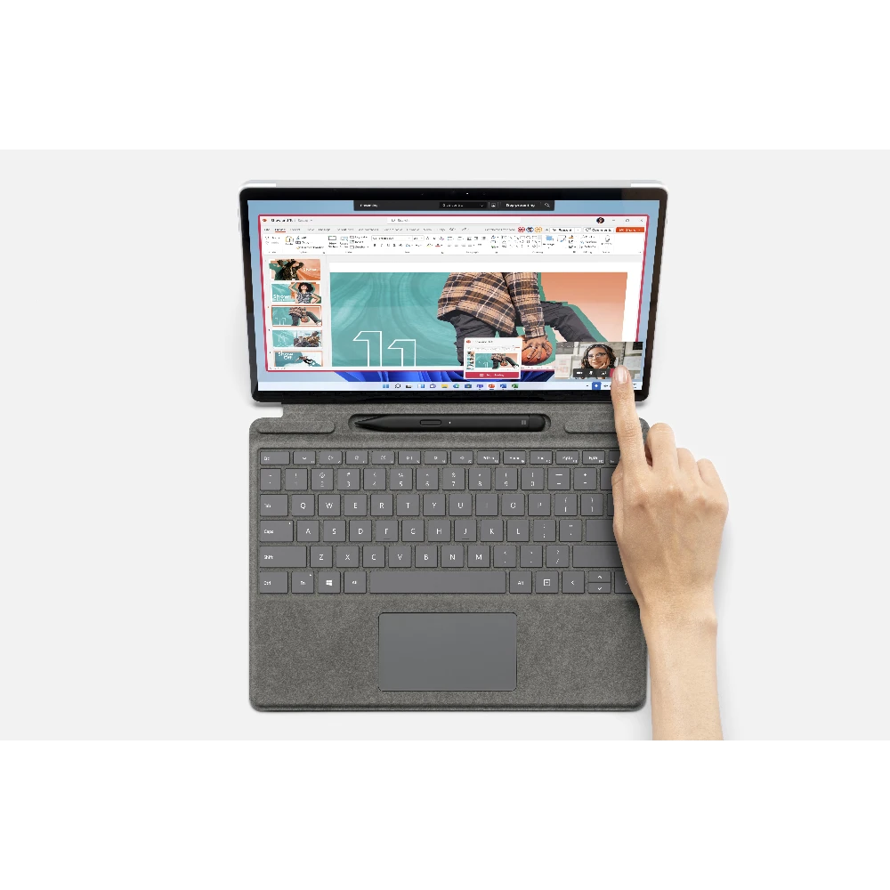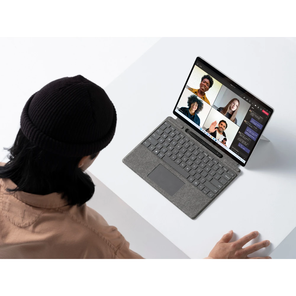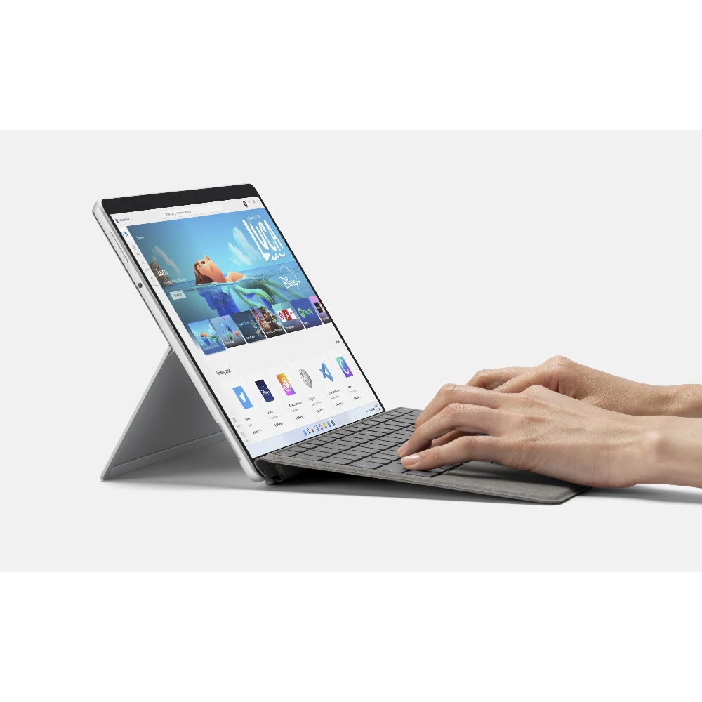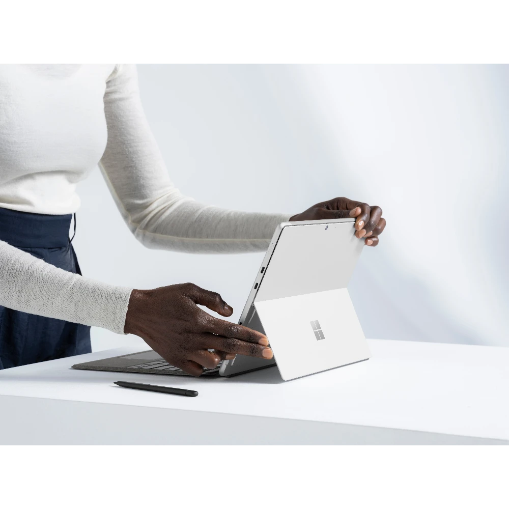 Employees are more flexible than ever. So is Surface Pro 8. Write in laptop mode, present with multiple screens in desktop mode, or sign a contract on screen in tablet mode. Surface Pro 8 is a 2-in-1 business laptop built to adapt.