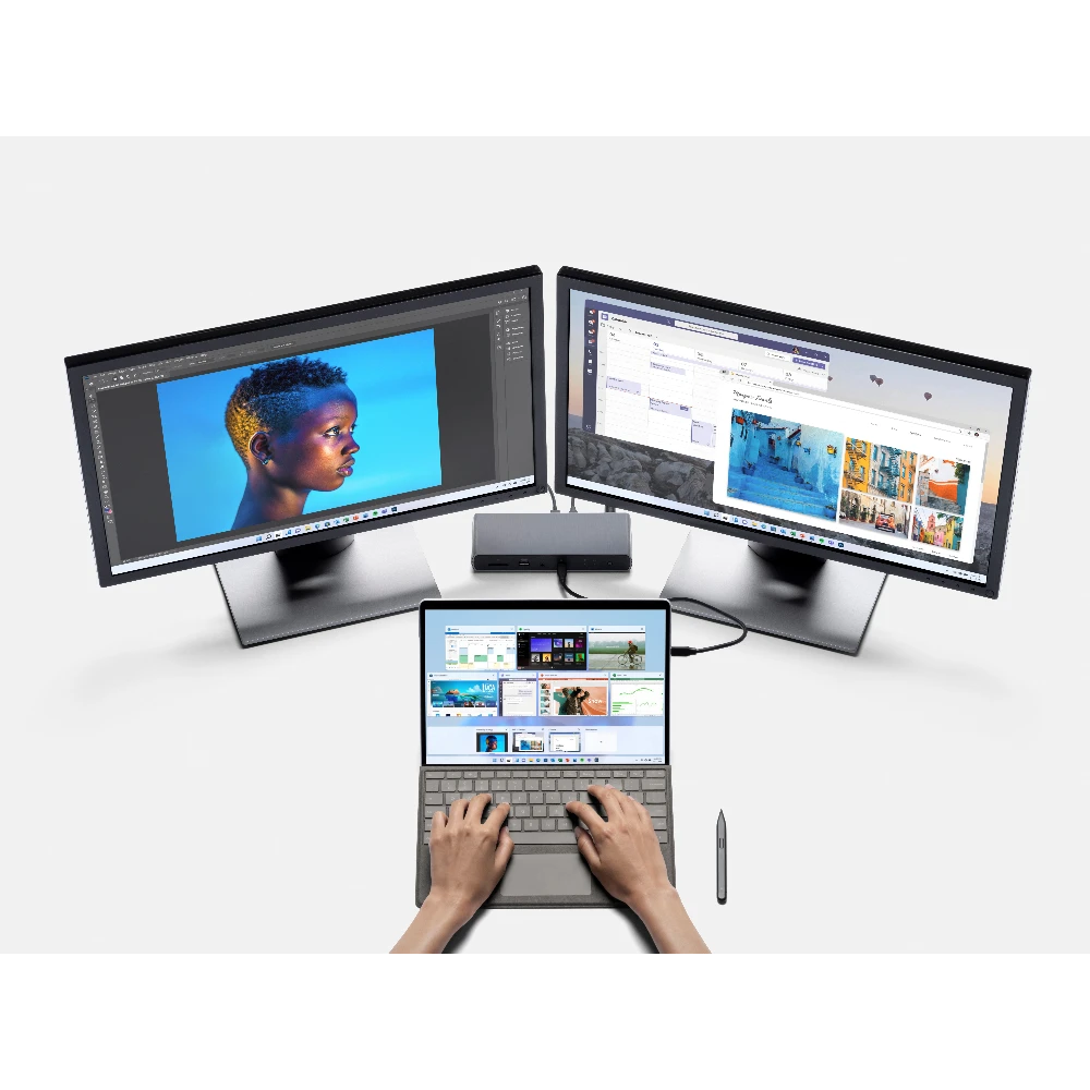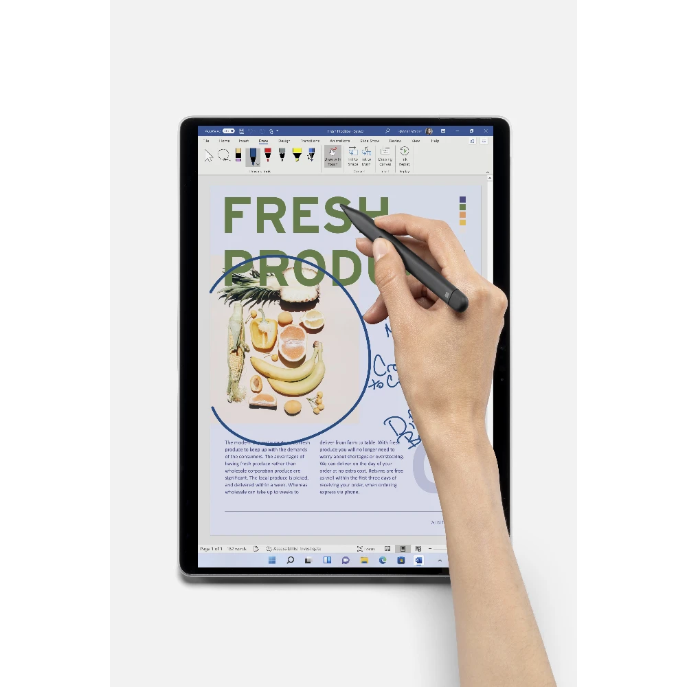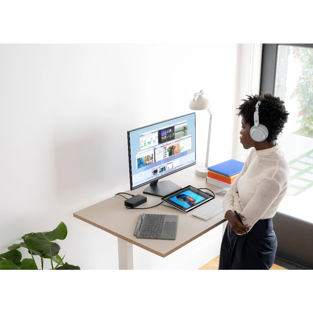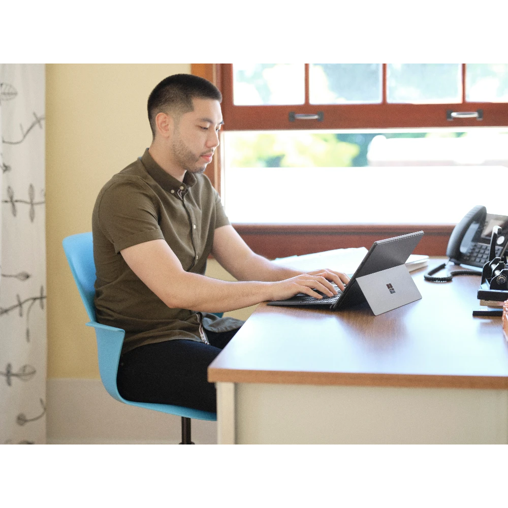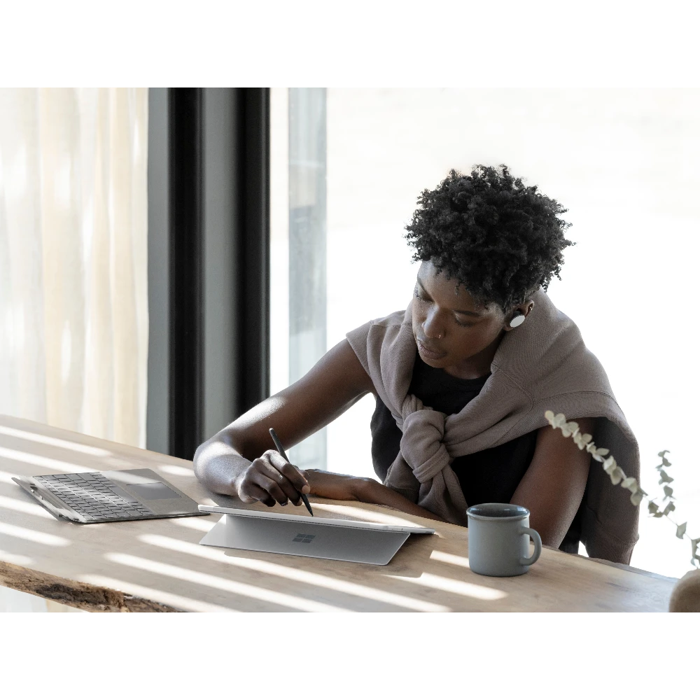 Employees are more flexible than ever. So is Surface Pro 8. Write in laptop mode, present with multiple screens in desktop mode, or sign a contract on screen in tablet mode. Surface Pro 8 is a 2-in-1 business laptop built to adapt.