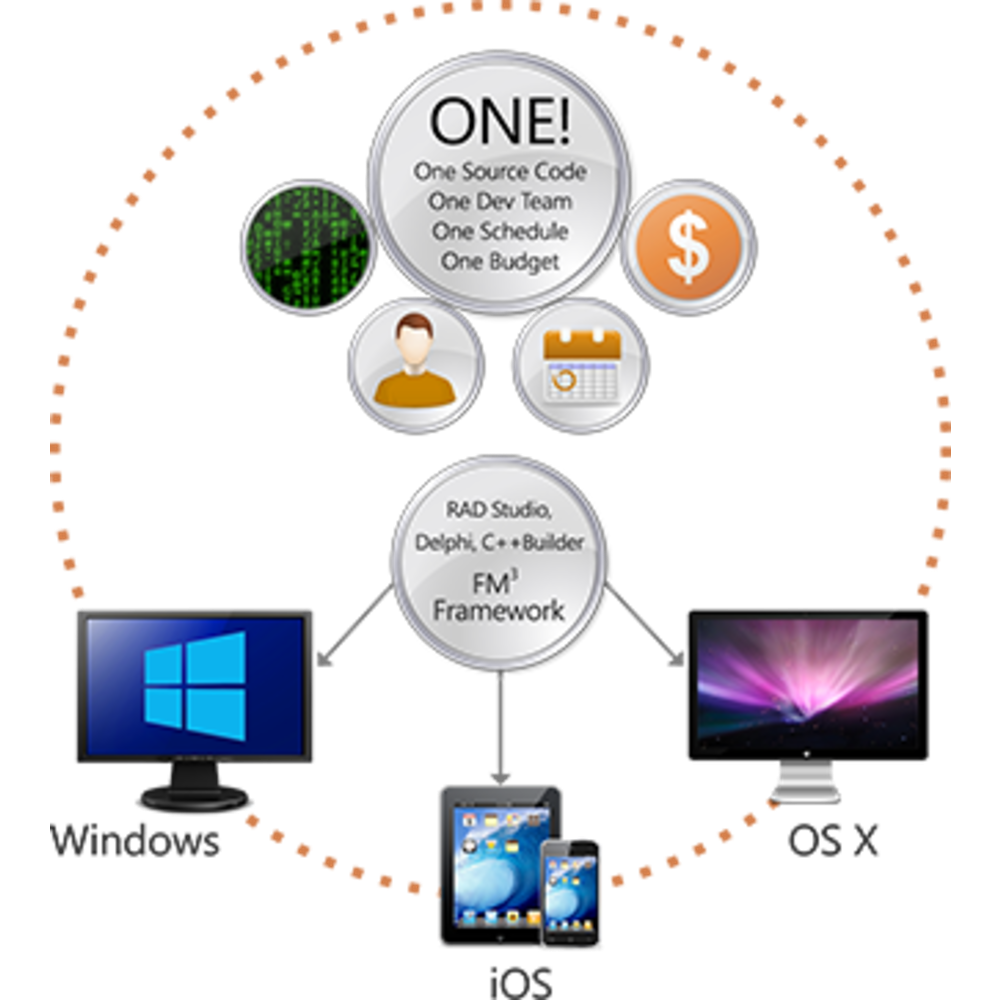 Tramite la tecnologia denominata Firemonkey è possibile creare un’applicazione e compilarla su tutti gli ambienti.