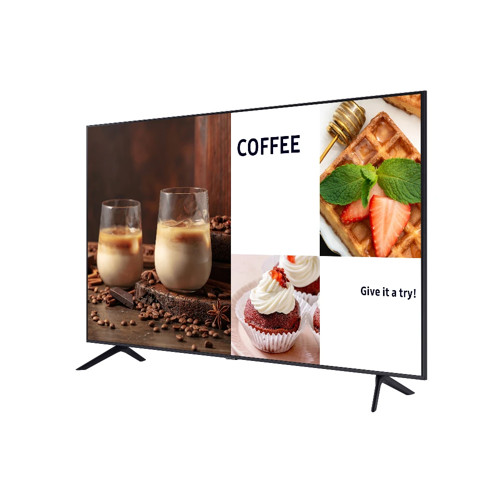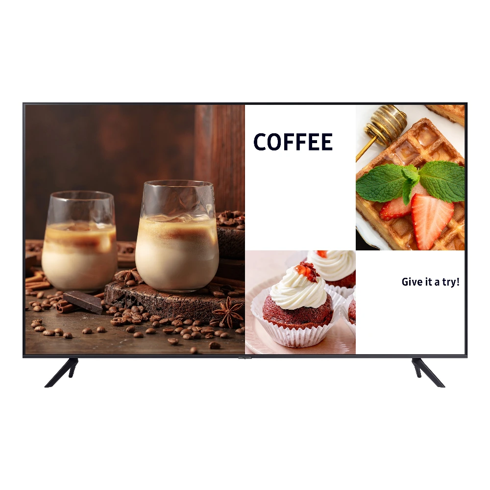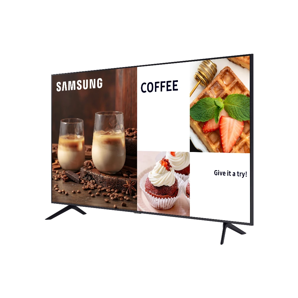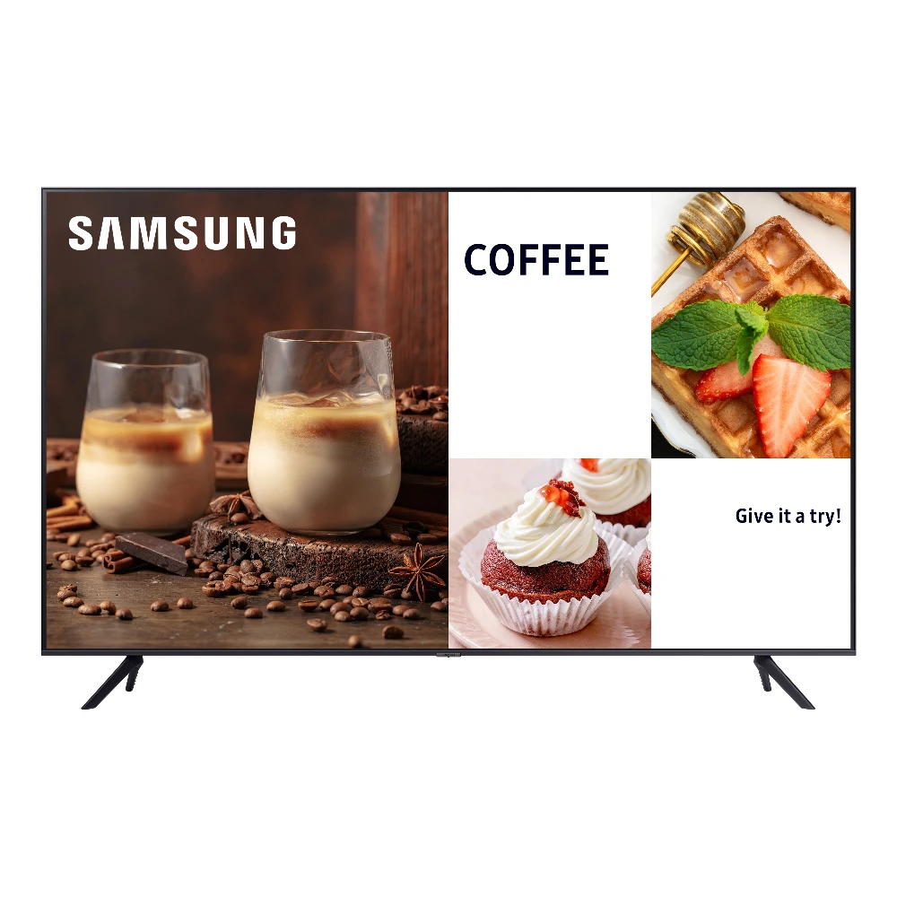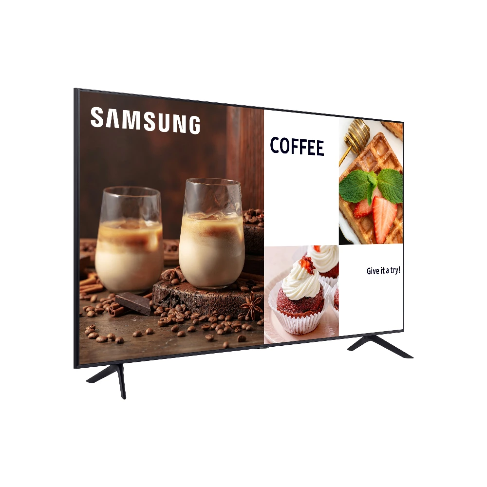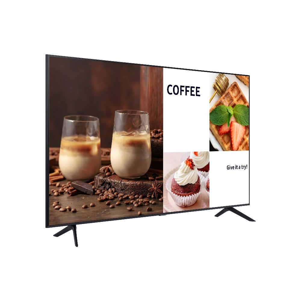Samsung LH55BECHLGUXEN. Product design: Digital signage flat panel. Display diagonal: 139.7 cm (55"), Display technology: LED, Display resolution: 3840 x 2160 pixels, HD type: 4K Ultra HD. Wi-Fi. Operating system installed: Tizen. Product colour: Black