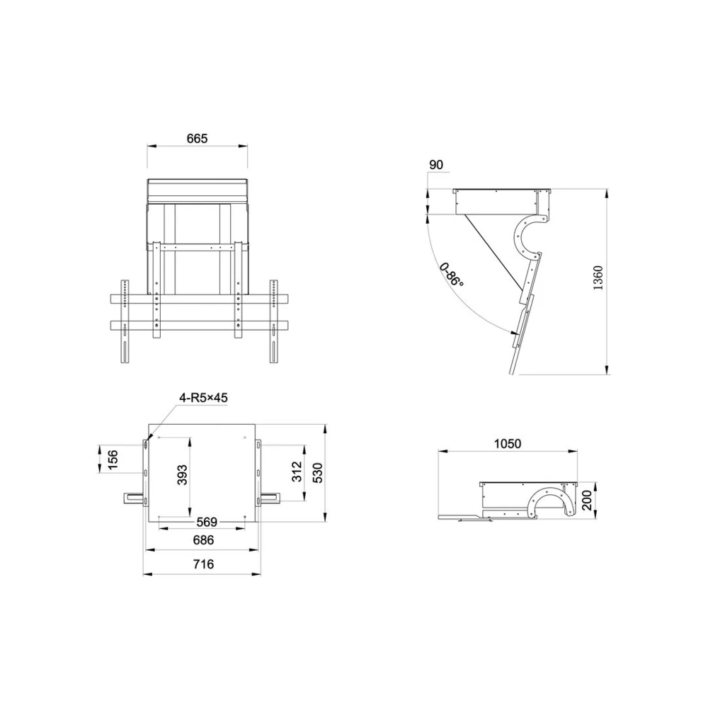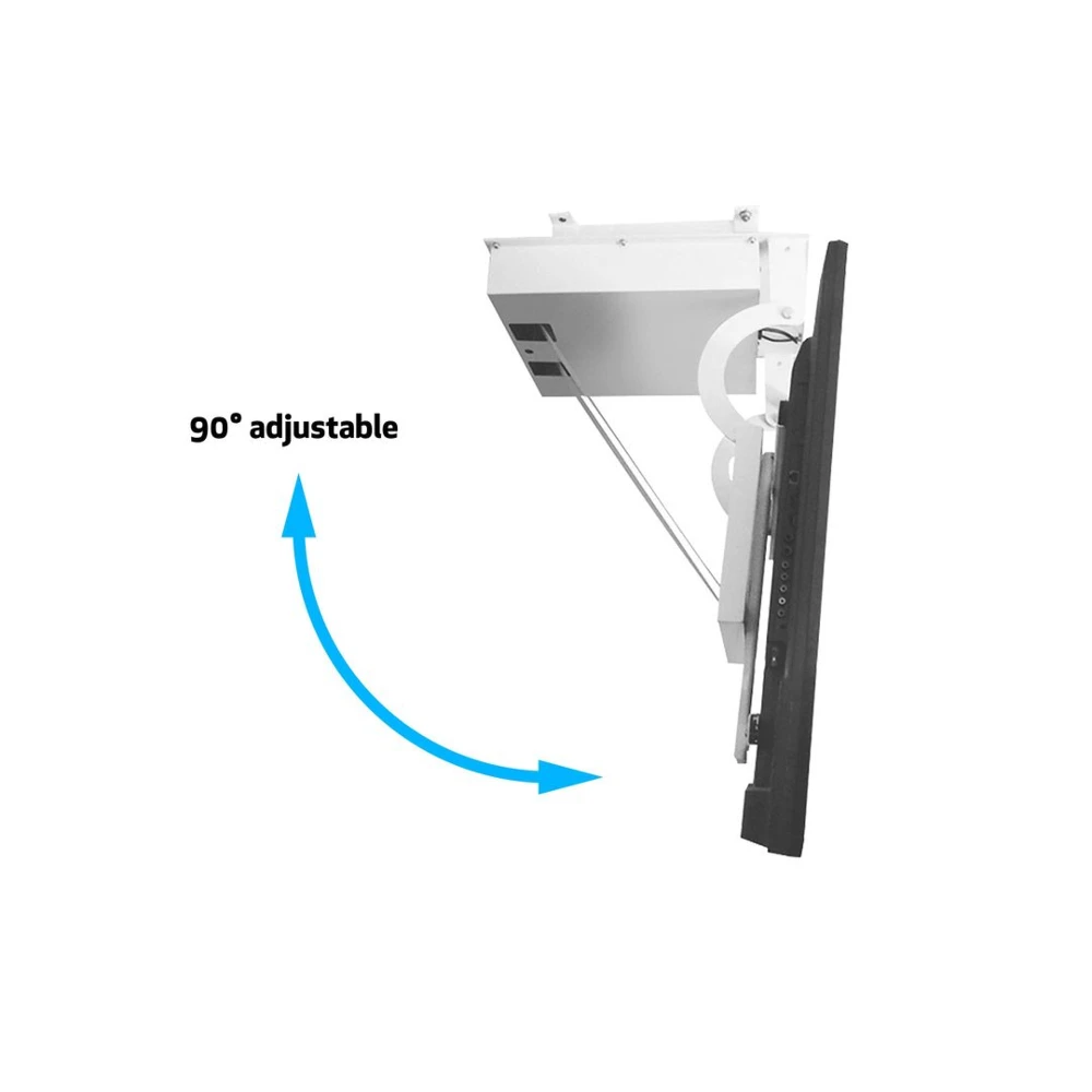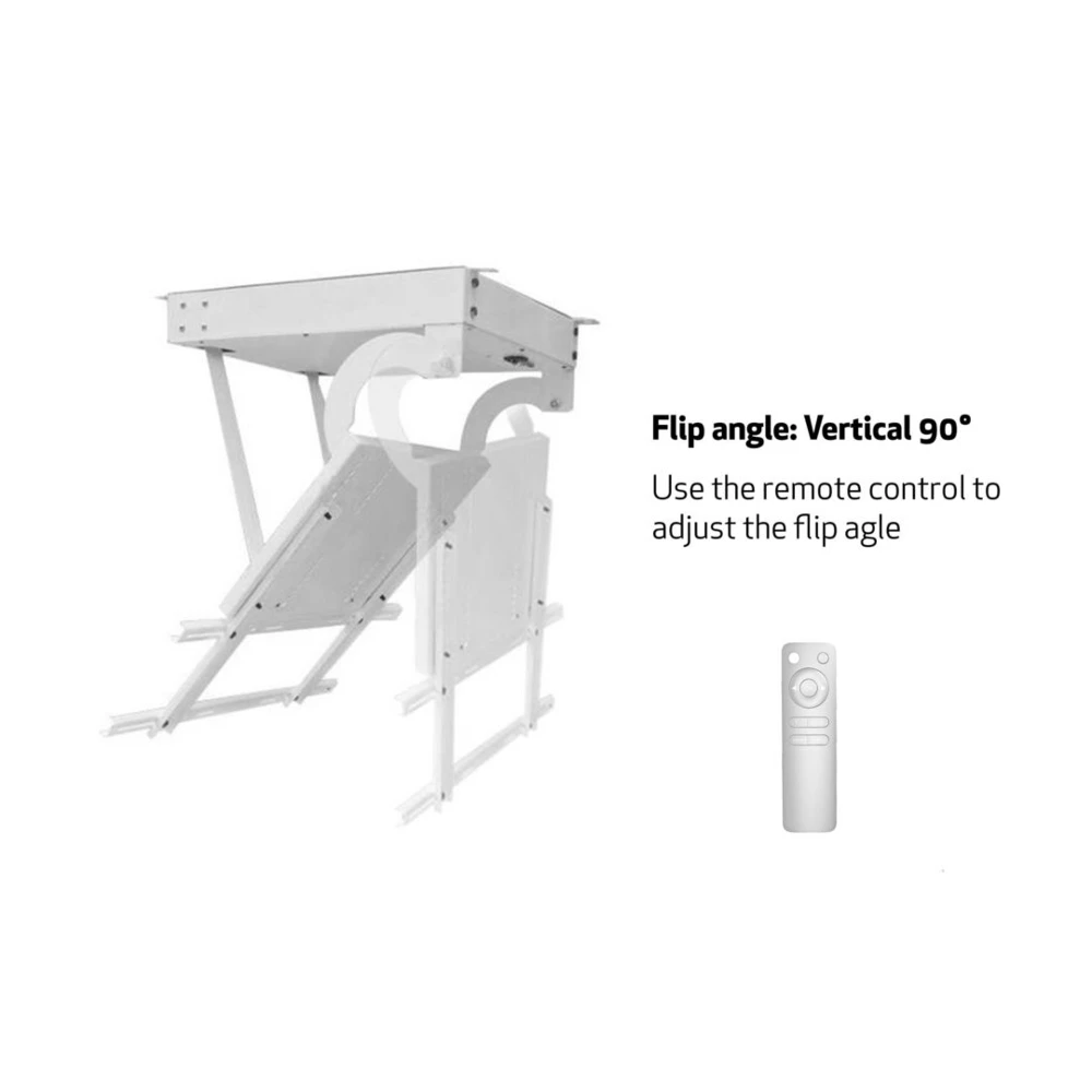 The M Motorized Ceilingmount Pro uses a rapid motorized flip down transition technique with little noise. Use the included remote control to fold down or flip up the TV. Multiple ceilingmounts can be controlled with one remote control, if the sensors of the ceilingmounts are close.