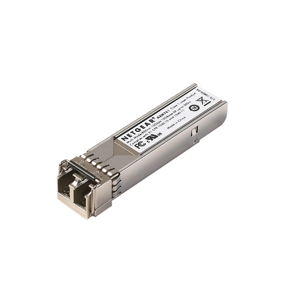 NETGEAR 10 Gigabit SR SFP+ Module. Maximum data transfer rate: 10000 Mbit/s, Maximum transfer distance: 300 m, Cabling technology: 10Gbase-SR. Weight: 17.1 g