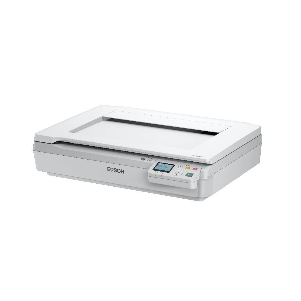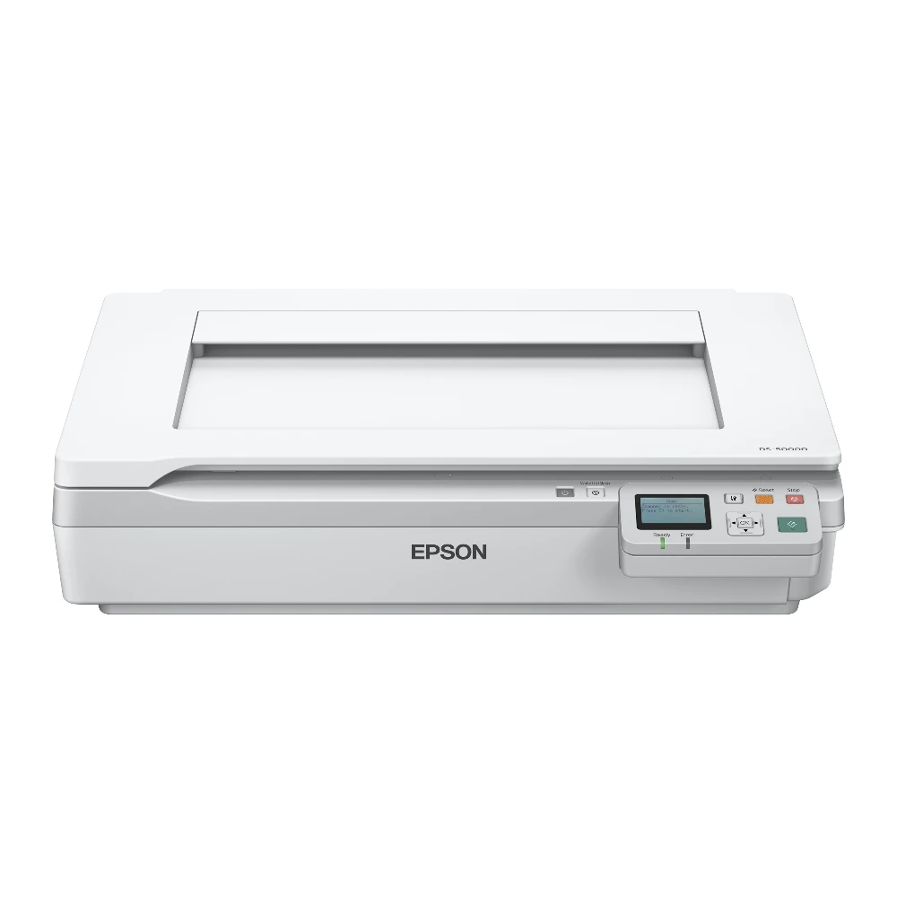 600 x 600 dpi, 48 Bits Color / 16 Bits Monochrome, Ethernet Epson WorkForce DS-50000N. Optical scanning resolution: 600 x 600 DPI, Input colour depth: 16 bit, Output colour depth: 48 bit. Scanner type: Flatbed scanner, Product colour: White. Scan file formats: JPG, PDF, TIFF, Scan to: E-mail, FTP. Maximum ISO A-series paper size: A3, ISO A-series sizes (A0...A9): A3, A4, A5, A6, ISO B-series sizes (B0...B9): B4, B5, B6. Standard interfaces: Ethernet This device is specially designed to accommodate documents individually, and is ideal for users with specific capture needs, such as scanning bound materials and thick or fragile documents. This scanner can be easily integrated into vertical applications thanks to TWAIN, ISIS and WIA support, as well as Document Capture Pro connectors. High-quality scanning results are ensured by CCD technology, innovating imaging features, such as Book Spine Correction, and improved colour dropout/enhance powered by Epson Scan. In addition, Document Capture Pro makes it easy to treat scanned data before its conversion and distribution in virtually any document repository or document management system. This scanner and its features can be shared between multiple users with the built-in Network Interface Panel. Combined with Document Capture Pro solutions, the Network Interface Panel allows users to benefit from Push Scan features and customise ‘scan to’ job functions, such as ‘scan to email’ or ‘scan to Microsoft SharePoint’. These features enable complicated tasks to be carried out effortlessly, increasing users' acceptance and eliminating training requirements. Epson ReadyScan LED technology eradicates warm-up time, guarantees an absence of mercury, and lowers power consumption. These elements creates an environmentally friendly device.