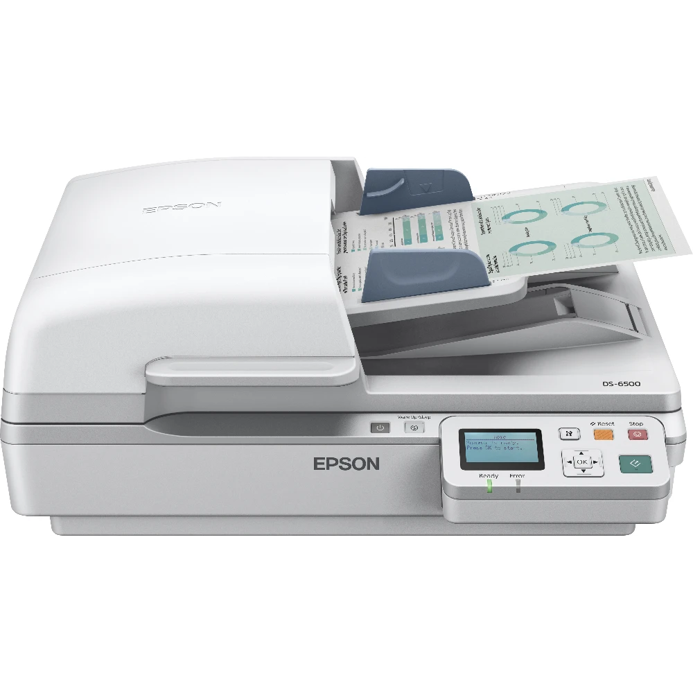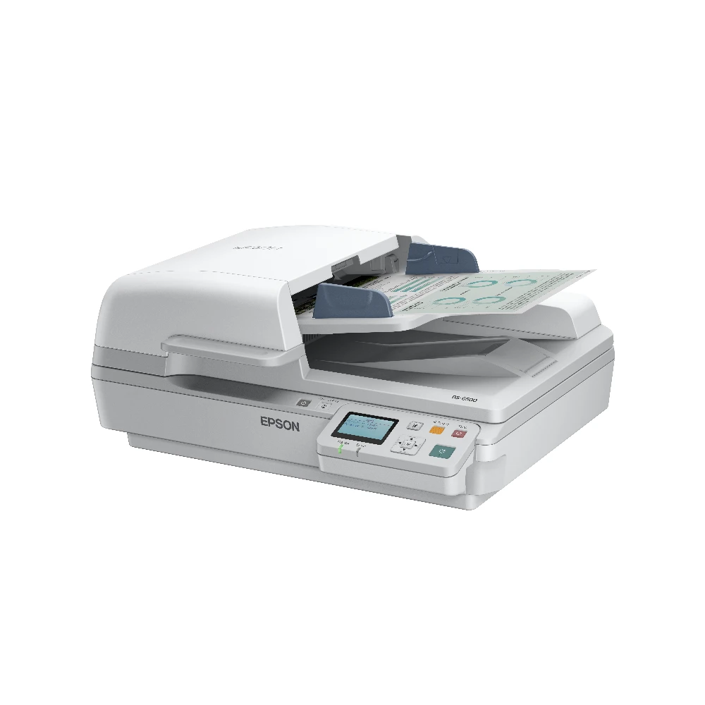 Epson WorkForce DS-7500N. Maximum scan size: 216 x 1016 mm, Optical scanning resolution: 1200 x 1200 DPI, Input colour depth: 48 bit. Scanner type: Flatbed & ADF scanner, Product colour: White, Display: LCD. Daily duty cycle (max): 4000 pages, Light source: ReadyScan LED, Scan file formats: JPG, PDF, TIFF. Maximum ISO A-series paper size: A4, Scanning media types supported: Plain paper, ISO A-series sizes (A0...A9): A4, A5, A6. Standard interfaces: Ethernet