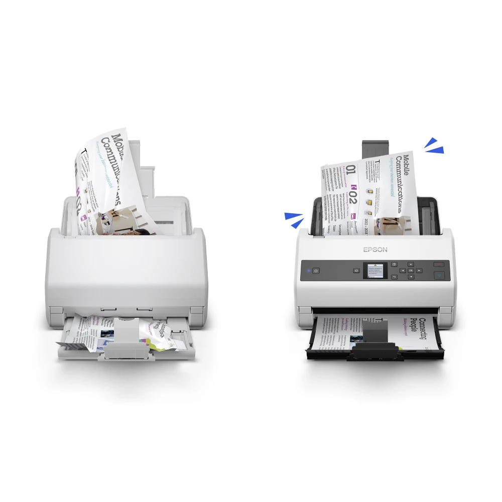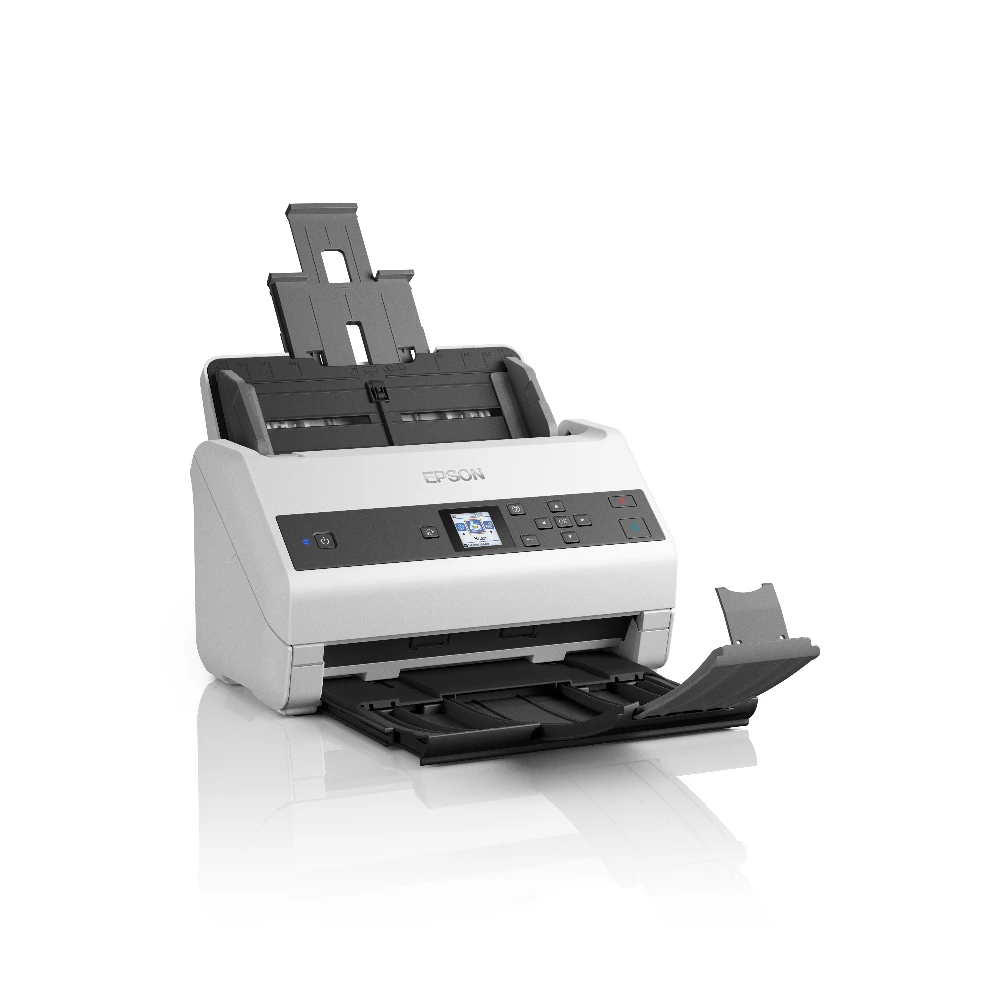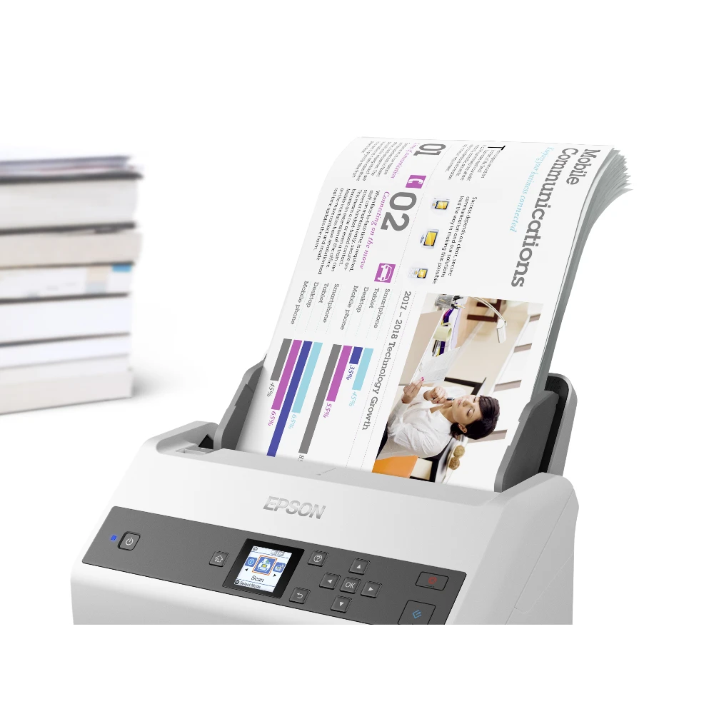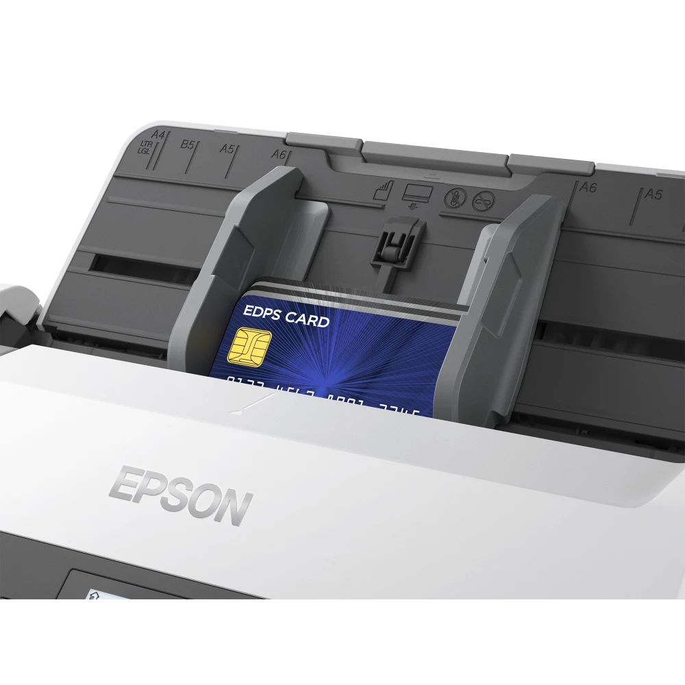 Epson WorkForce DS-970. Optical scanning resolution: 600 x 600 DPI, Input colour depth: 30 bit, Output colour depth: 24 bit. Scanner type: Sheet-fed scanner, Product colour: Grey, White, Display: LCD. Sensor type: CIS, Daily duty cycle (max): 9000 pages, Scan file formats: JPEG, PDF, TIFF. Auto document feeder (ADF) input capacity: 100 sheets. Maximum ISO A-series paper size: A4, Scanning media types supported: Business Card, Plastic Card, Post Card(JPN), ISO A-series sizes (A0...A9): A3, A4, A5, A6