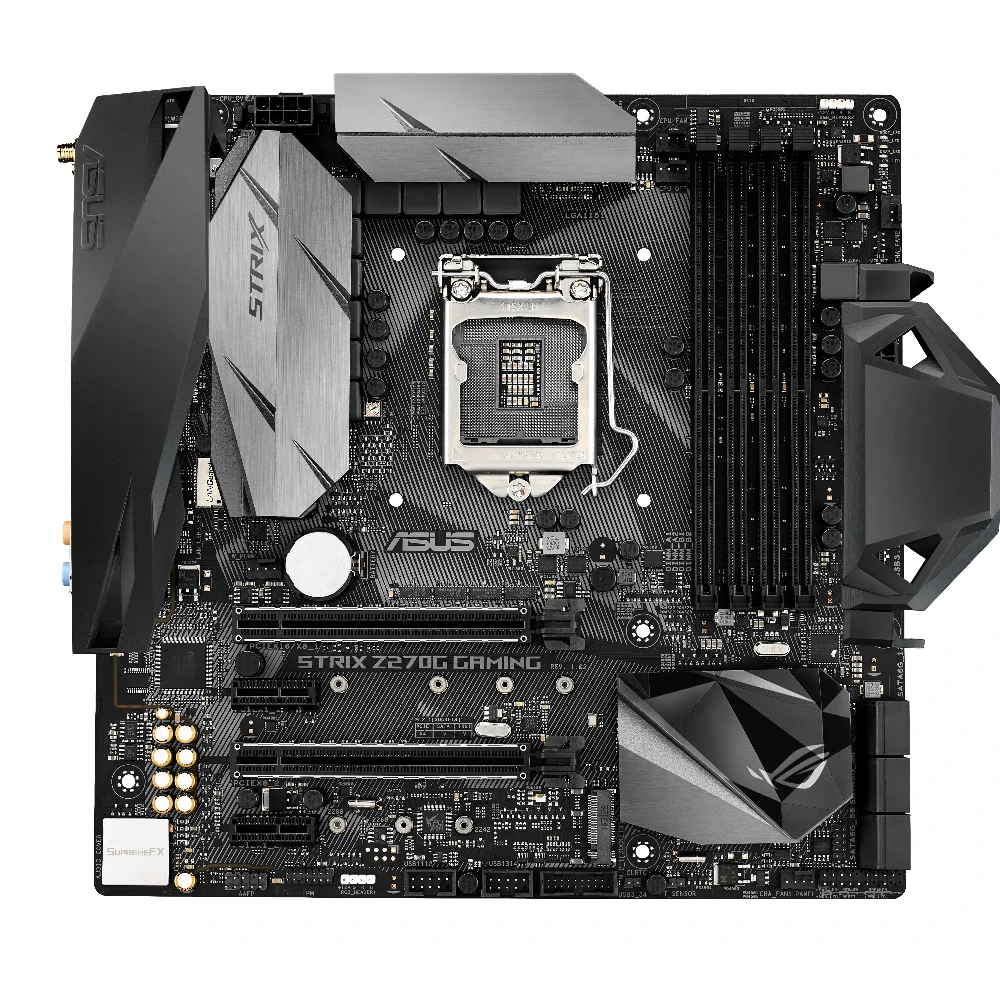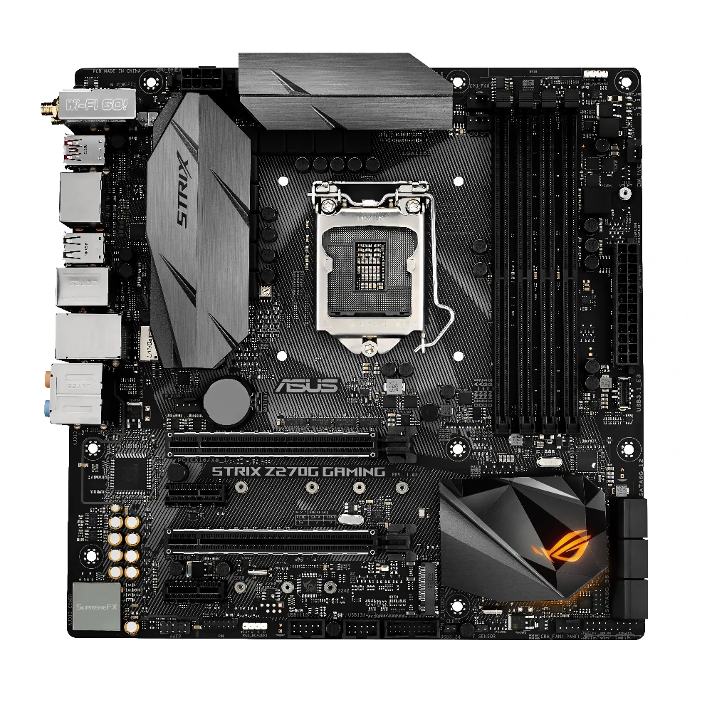 ASUS ROG STRIX Z270G GAMING. Processor manufacturer: Intel, Processor socket: LGA 1151 (Socket H4), Compatible processor series: Intel® Celeron®, Intel® Pentium®. Supported memory types: DDR4-SDRAM, Maximum internal memory: 64 GB, Memory slots type: DIMM. Graphics card family: Intel. LAN controller: Intel® I219-V, Wi-Fi standards: 802.11a, Wi-Fi 5 (802.11ac), 802.11b, 802.11g, Wi-Fi 4 (802.11n). Component for: PC, Motherboard form factor: ATX, Motherboard chipset family: Intel