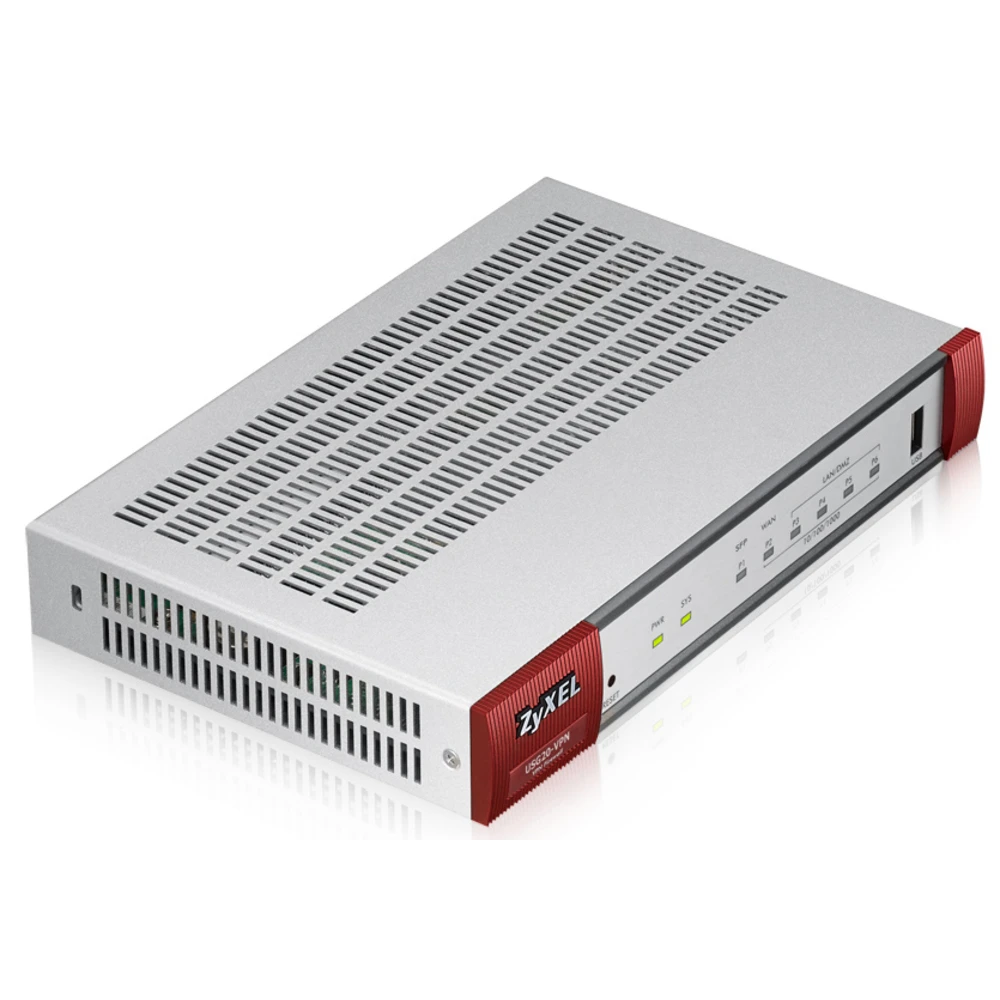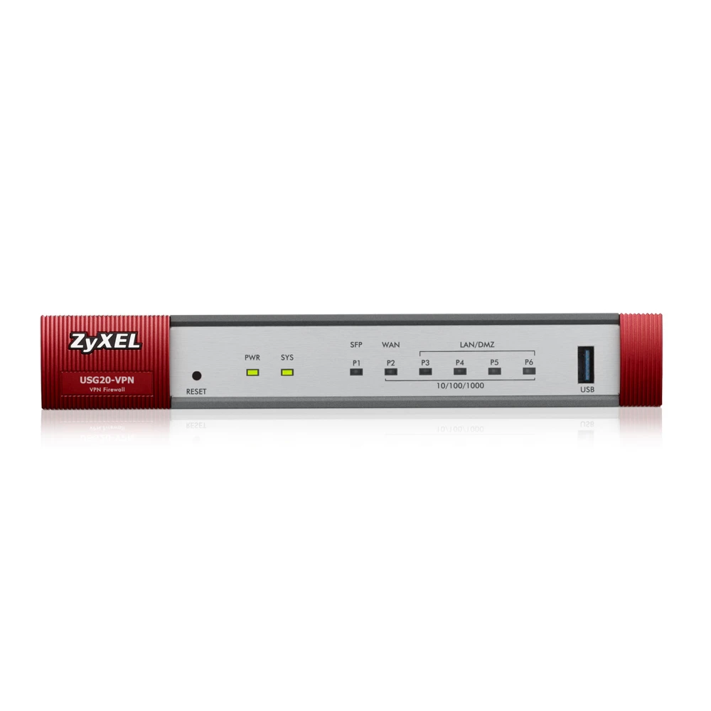 Zyxel ZyWALL USG20-VPN-EU0101F. Networking standards: IEEE 802.3, IEEE 802.3ab, IEEE 802.3u, Ethernet interface type: Gigabit Ethernet, Cabling technology: 10/100/1000Base-T(X). Security algorithms: SSID, SSL/TLS. Cables included: LAN (RJ-45). Heat dissipation: 40.92 BTU/h, Mean time between failures (MTBF): 44000 h, Safety: BSMI, UL. Product colour: Grey, Red, LED indicators: Activity, LAN, Link, Power, Uplink, WAN