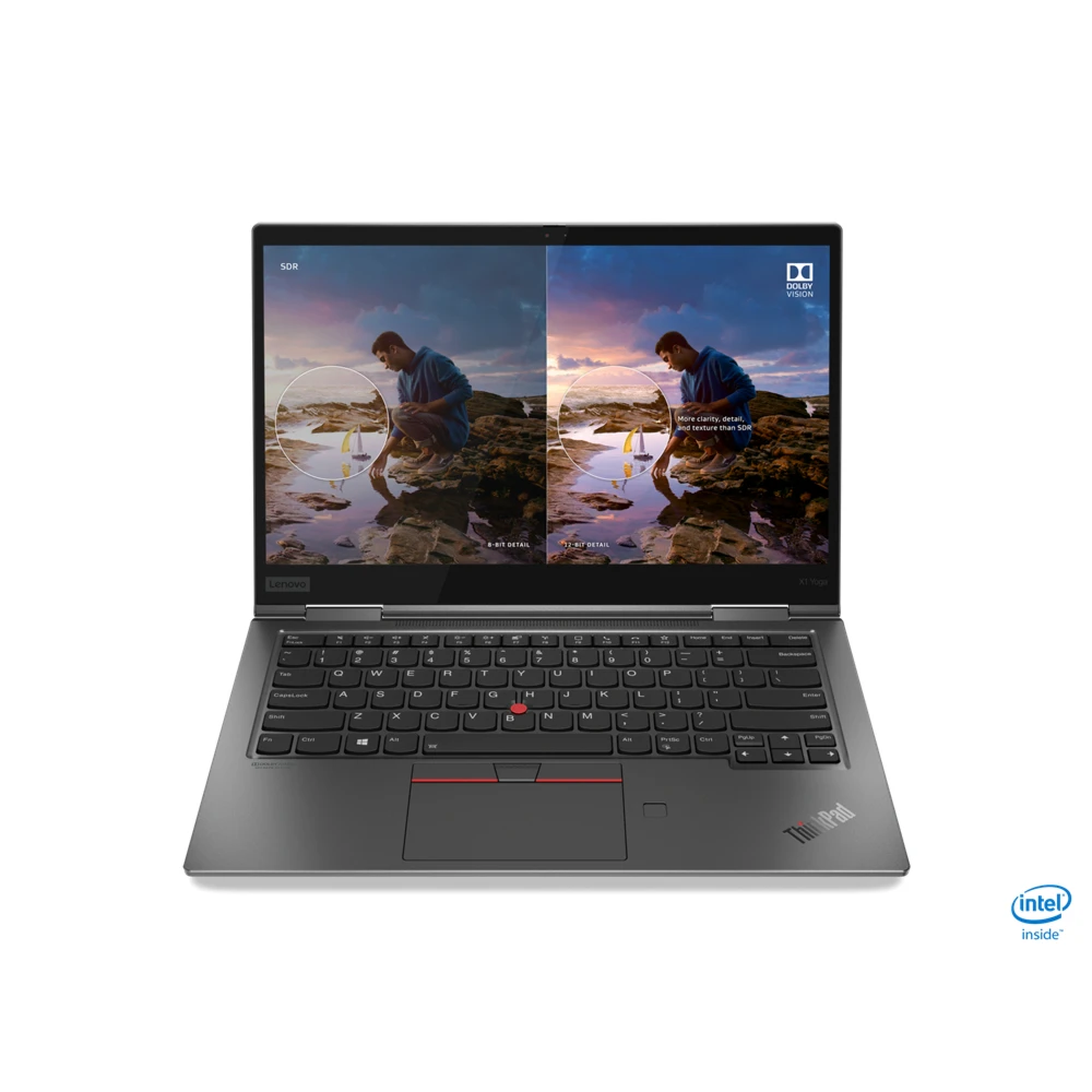 Intel Core i7-10510U (4C/8T, 1.8/4.9GHz, 8MB), 16GB LPDDR3-2133, 1TB SSD M.2 2280 PCIe 3.0x4 NVMe Opal2, 14" FHD (1920x1080) Low Power IPS 400nits AR (anti-reflection) / AS (anti-smudge) Touch, Intel UHD Graphics, Intel AX201 11ax 2x2 + BT5.2, IR & 720p with ThinkShutter, Windows 10 Pro 64 Lenovo ThinkPad X1 Yoga Gen 5. Product type: Hybrid (2-in-1), Form factor: Convertible (Folder). Processor family: Intel® Core™ i7, Processor model: i7-10510U, Processor frequency: 1.8 GHz. Display diagonal: 35.6 cm (14"), HD type: Full HD, Display resolution: 1920 x 1080 pixels, Touchscreen. Internal memory: 16 GB, Internal memory type: LPDDR3-SDRAM. Total storage capacity: 1 TB, Storage media: SSD. Operating system installed: Windows 10 Pro. Product colour: Grey Ever accommodating, it bends over backwards for you
