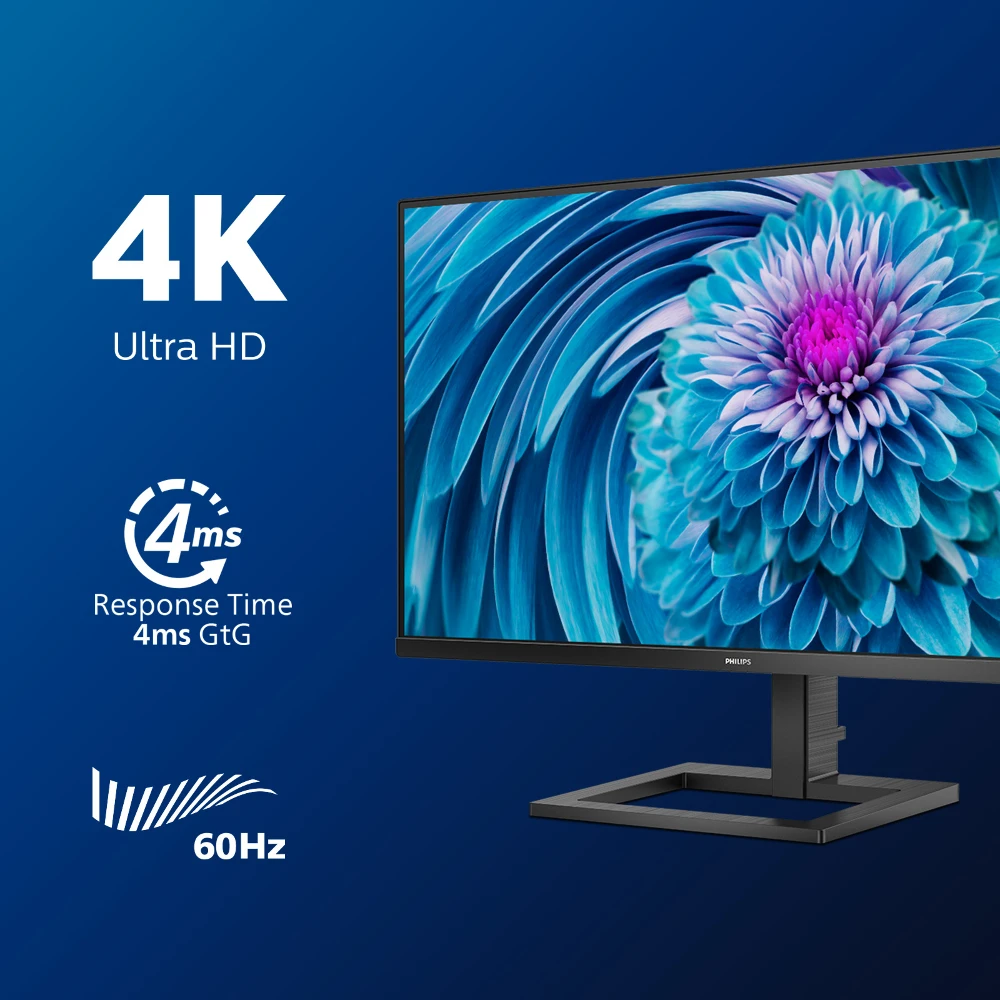 The Philips E Line monitor features stunning visuals and stylish design for your workspace. Ultra-clear 4K UHD and Ultra Wide-Color deliver ultimate clarity and life-like visuals. MultiView meets the need for usability and productivity.