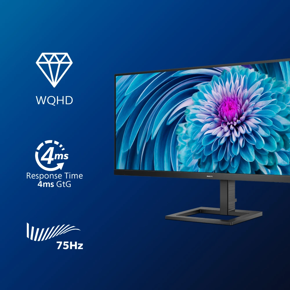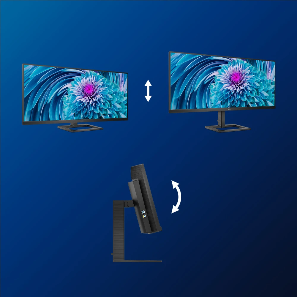 The Philips E line UltraWide display gives an expansive panoramic visual. A CrystalClear WQHD display, Ultra Wide-Color and ergonomic stand design make for optimal viewing conditions. MultiView meets the need for usability and productivity.