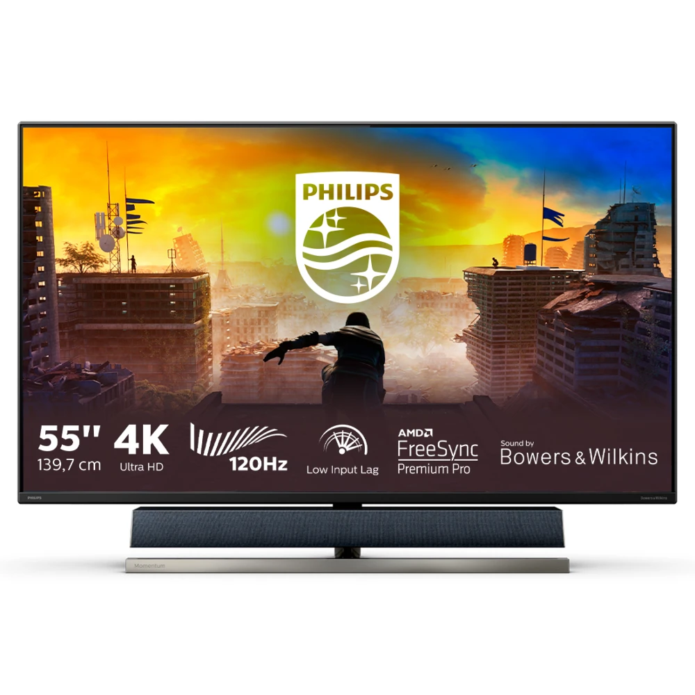 Philips Momentum 558M1RY/00. Display diagonal: 139.7 cm (55"), Display resolution: 3840 x 2160 pixels, HD type: 4K Ultra HD, Display technology: LED, Response time: 4 ms, Native aspect ratio: 16:9, Viewing angle, horizontal: 178°, Viewing angle, vertical: 178°. Built-in speaker(s). Built-in USB hub, USB hub version: 3.2 Gen 2 (3.1 Gen 2). VESA mounting. Product colour: Black