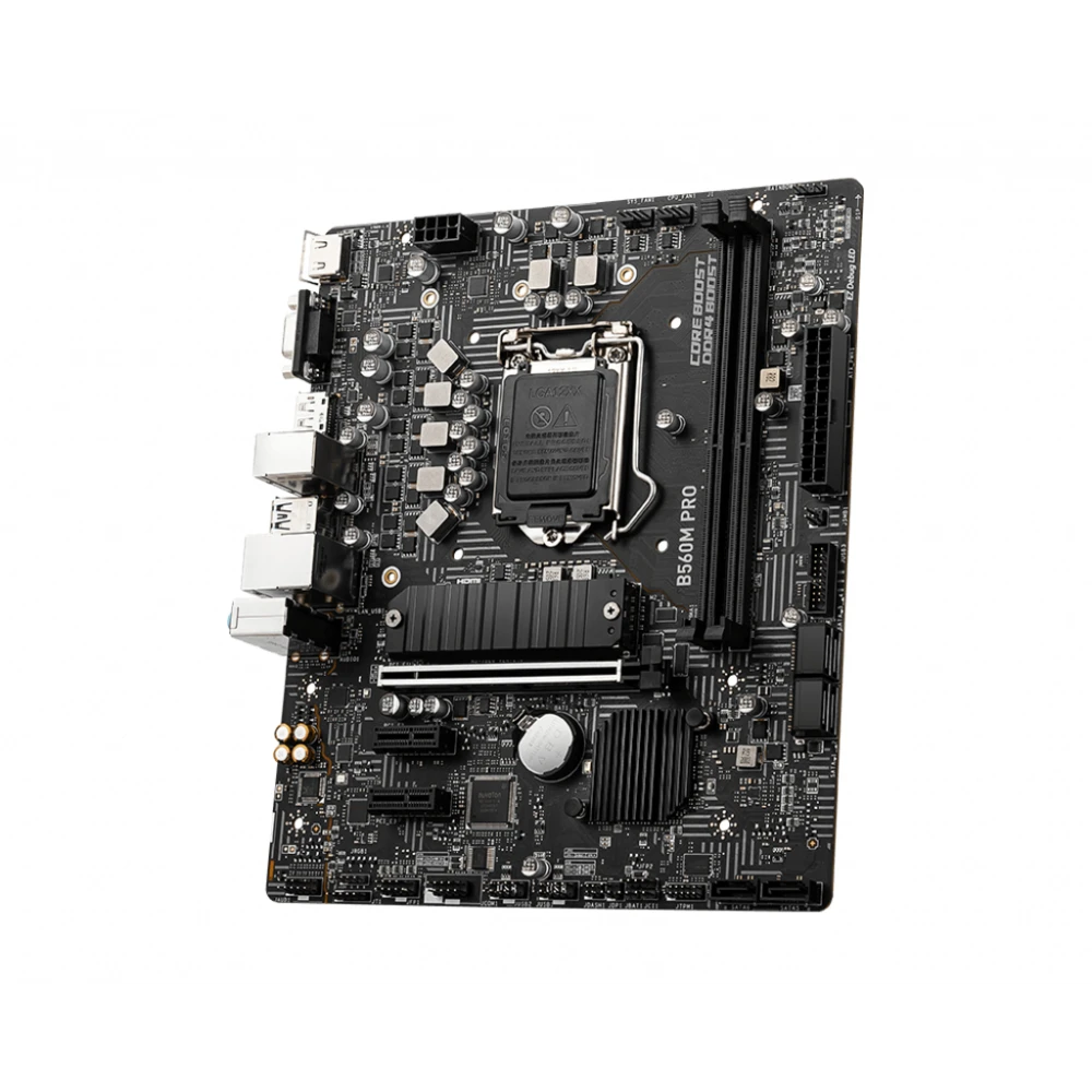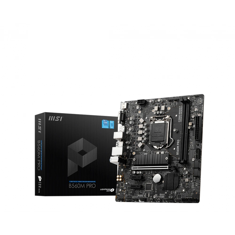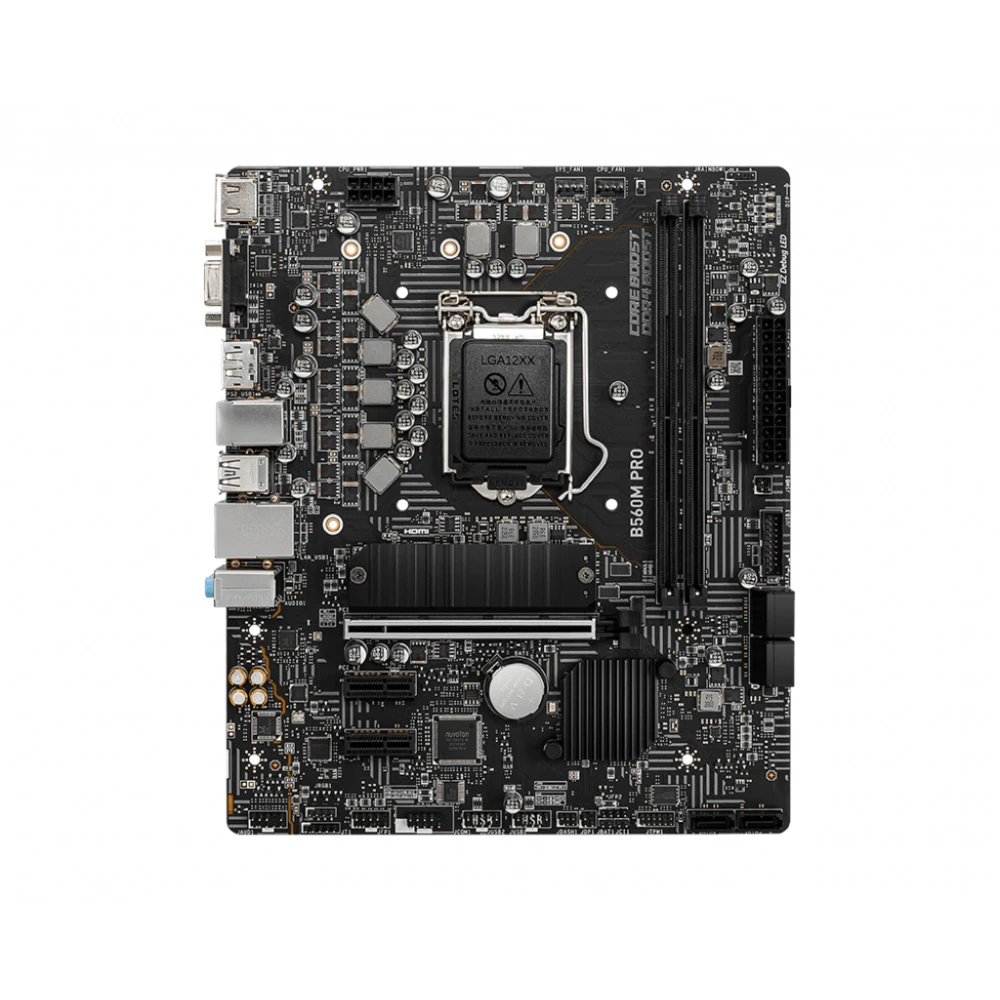 MSI B560M PRO. Processor manufacturer: Intel, Processor socket: LGA 1200 (Socket H5), Compatible processor series: Intel® Celeron®, Intel® Core™ i5, Intel® Core™ i7, Intel® Core™ i9, Intel® Pentium®. Supported memory types: DDR4-SDRAM, Maximum internal memory: 64 GB, Memory slots type: DIMM. Supported storage drive interfaces: M.2, SATA, Supported storage drive types: HDD & SSD, RAID levels: 0, 1, 5, 10. Maximum resolution: 4096 x 2304 pixels. HDMI version: 2.0b, USB connector type: USB Type-A