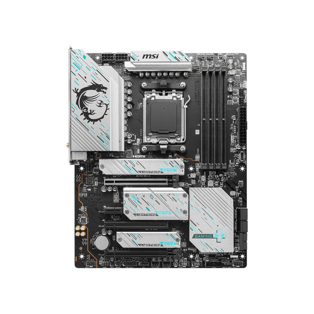 4x DDR5, 1x HDMI, 1x DisplayPort, 4x M.2, X670E, Wifi, AM5, ATX MSI X670E GAMING PLUS WIFI. Processor manufacturer: AMD, Processor socket: Socket AM5. Supported memory types: DDR5-SDRAM, Maximum internal memory: 192 GB, Memory slots type: DIMM. Supported storage drive interfaces: M.2, SATA III, RAID levels: 0, 1, 10. Ethernet interface type: 2.5 Gigabit Ethernet, LAN controller: Realtek RTL8125-BG, Top Wi-Fi standard: Wi-Fi 6E (802.11ax). Component for: PC, Motherboard form factor: ATX, Motherboard chipset family: AMD Extended Heatsink