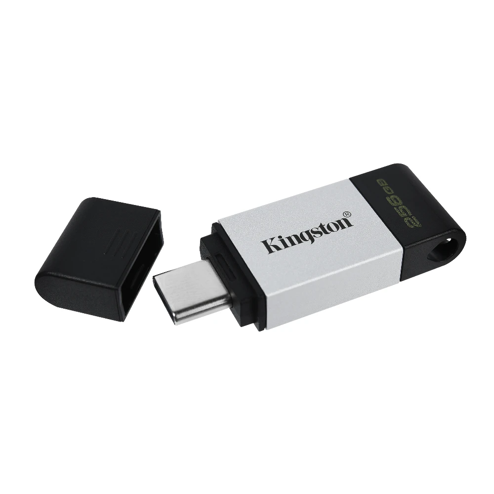 Kingston’s DataTraveler® 80 is a high-performance USB flash drive that supports Type-C laptops, desktops, smartphones and tablets without the need for an adapter. With extremely fast transfer speeds of up to 200MB/s read and 60MB/s write**, the DataTraveler® 80 allows quick and convenient file transfers. The compact and capped design with a durable casing and keyring loop makes it ideal for on-the-go storage.
