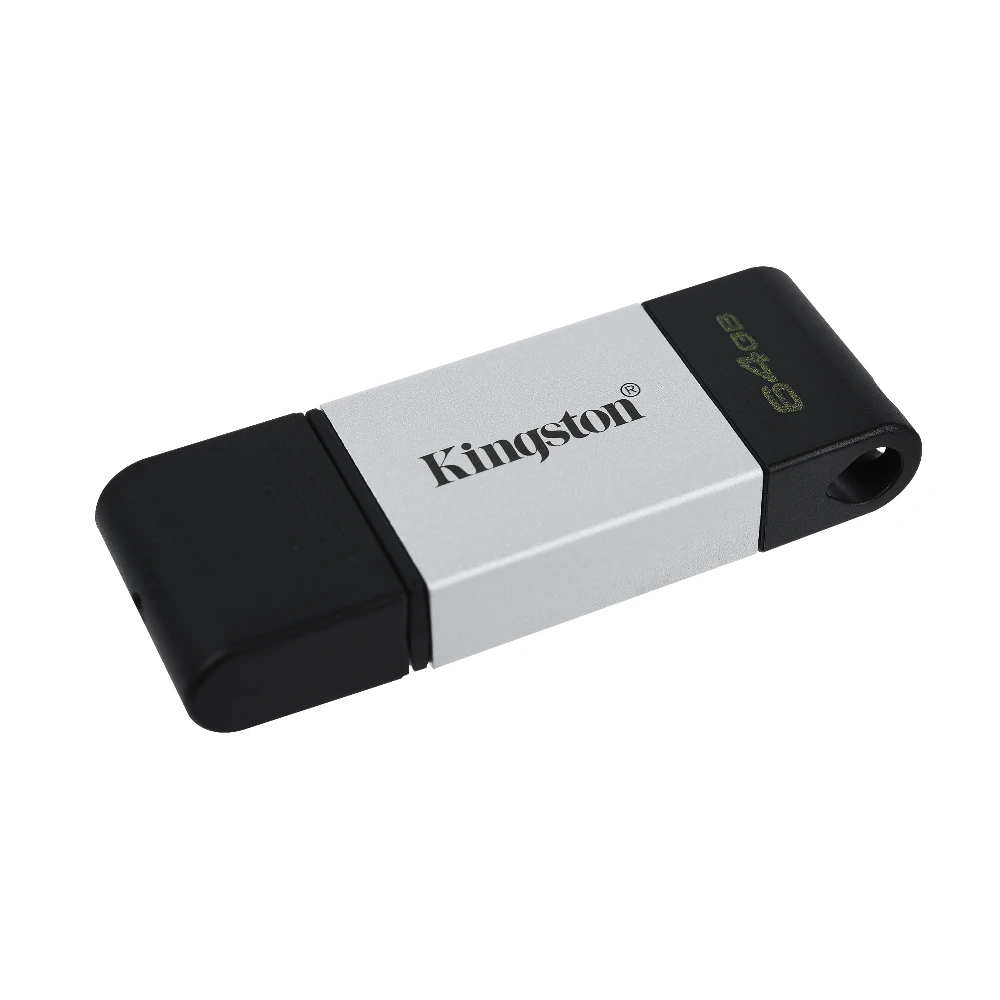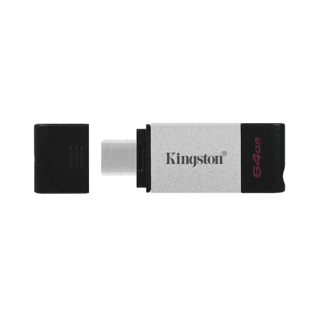 Kingston Technology DataTraveler 80. Capacity: 64 GB, Device interface: USB Type-C, USB version: 3.2 Gen 1 (3.1 Gen 1), Read speed: 200 MB/s. Form factor: Cap. Weight: 4.134 g. Product colour: Black, Silver