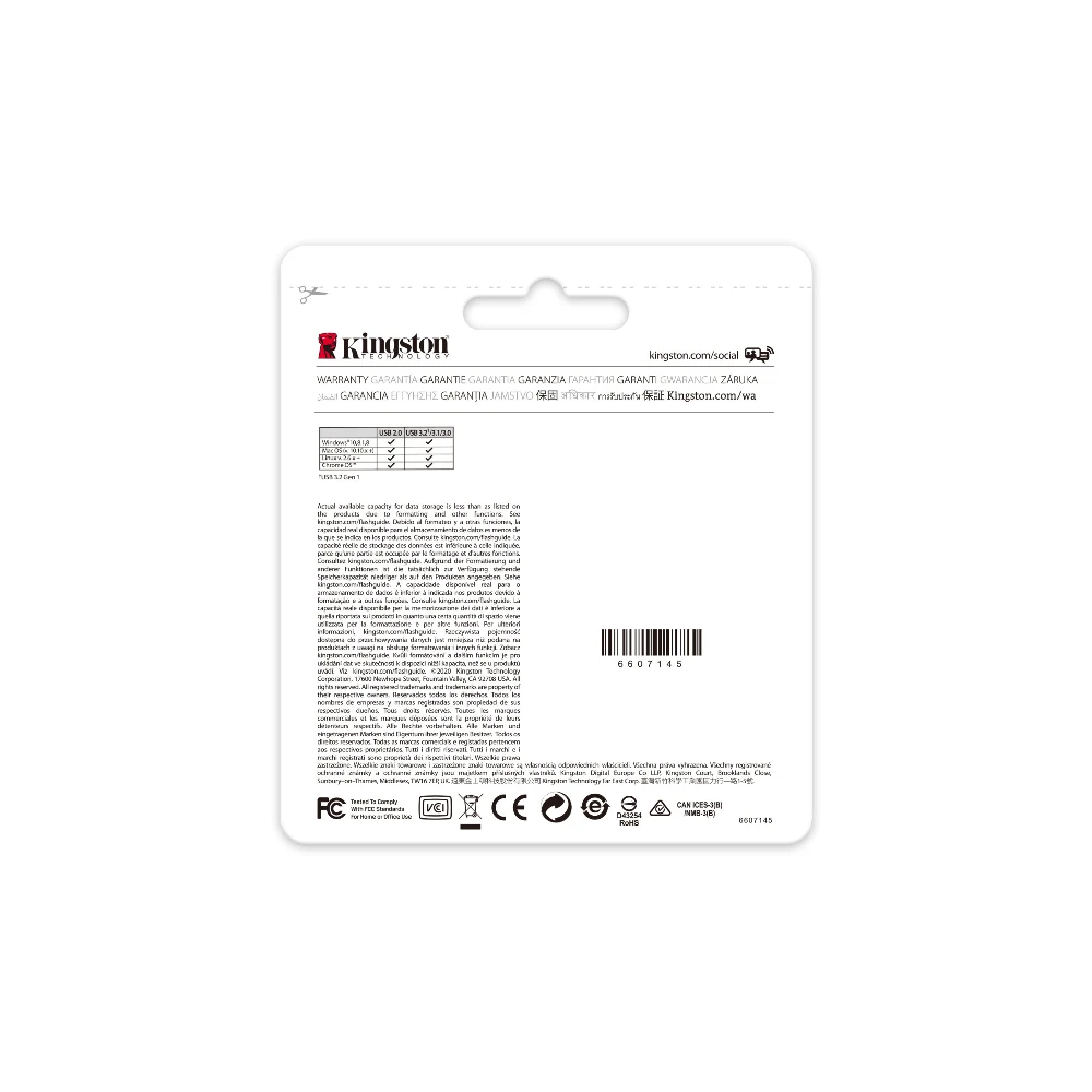 * Some of the listed capacity on a Flash storage device is used for formatting and other functions and is thus not available for data storage. As such, the actual available capacity for data storage is less than what is listed on the products. For more information, go to Kingston’s Flash memory guide at kingston.com/flashguide.