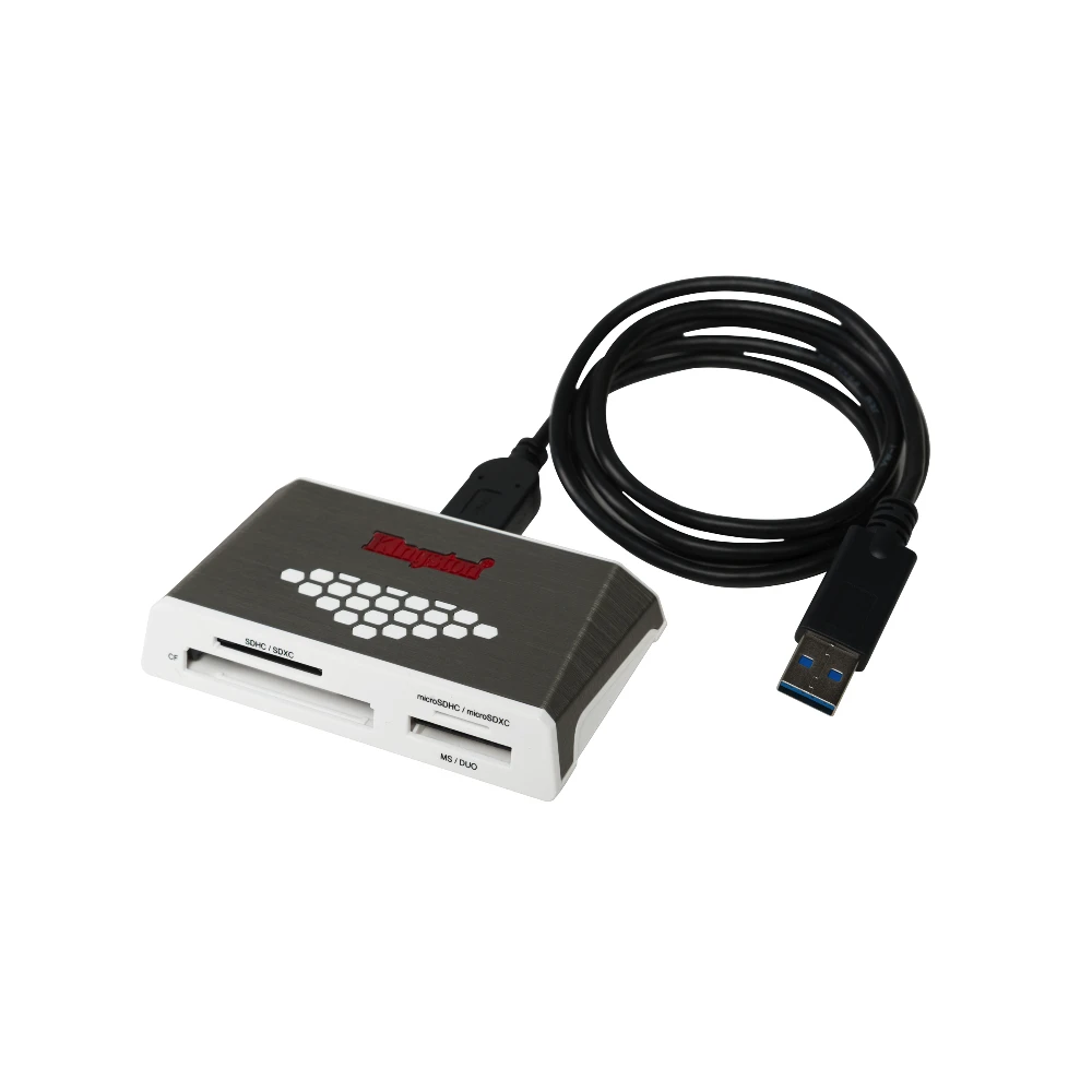 USB 3.0 High-Speed Media Reader Kingston Technology USB 3.0 High-Speed Media Reader. Compatible memory cards: CF, Memory Stick (MS), MicroSD (TransFlash), MicroSDHC, MicroSDXC, MS Duo, SD, SDHC, SDXC, Product colour: Grey, White, Data transfer rate: 5000 Mbit/s. Interface type: USB 3.2 Gen 1 (3.1 Gen 1). Width: 93.3 mm, Depth: 52.7 mm, Height: 16 mm. Package type: Blister Kingston’s USB 3.0 High-Speed Media Reader reads all major card format types and supports UHS-I and UHS-II SD card speeds, making it ideal for photographers, videographers, design studios and printing houses. This versatile reader lets you easily transfer photos, videos, music and other data between your favourite cards and your PC.