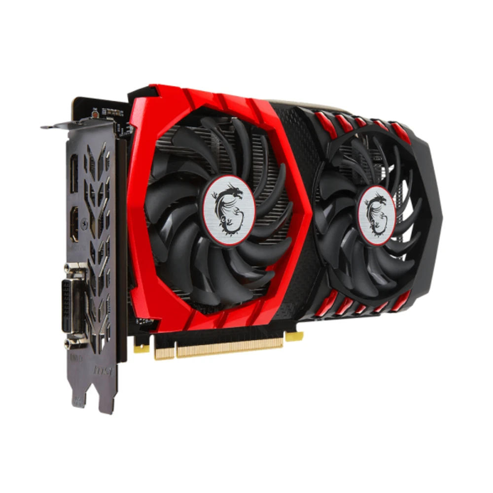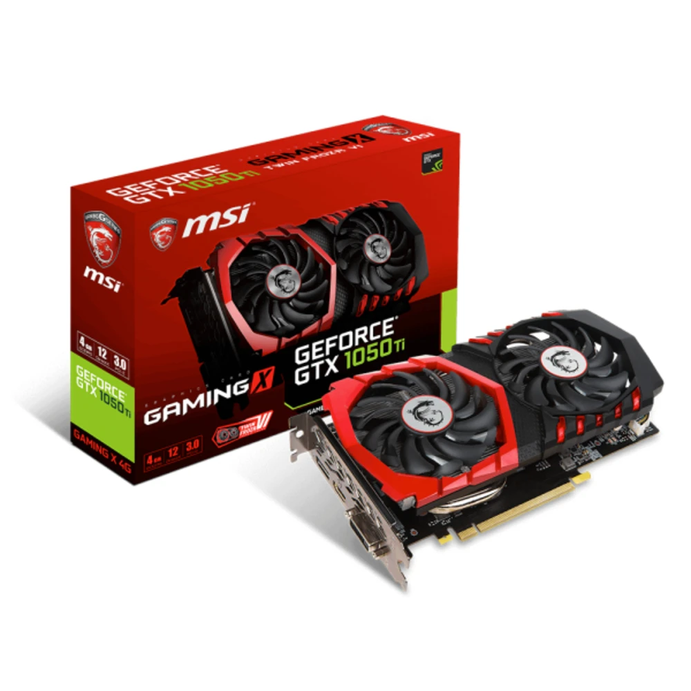 MSI GAMING GeForce GTX 1050 Ti X 4G. Graphics processor family: NVIDIA, Graphics processor: GeForce GTX 1050 Ti. Discrete graphics card memory: 4 GB, Graphics card memory type: GDDR5, Memory bus: 128 bit. Maximum resolution: 7680 x 4320 pixels. DirectX version: 12.0, OpenGL version: 4.5, Dual Link DVI. Interface type: PCI Express x16 3.0. Cooling type: Active, Number of fans: 2 fan(s)