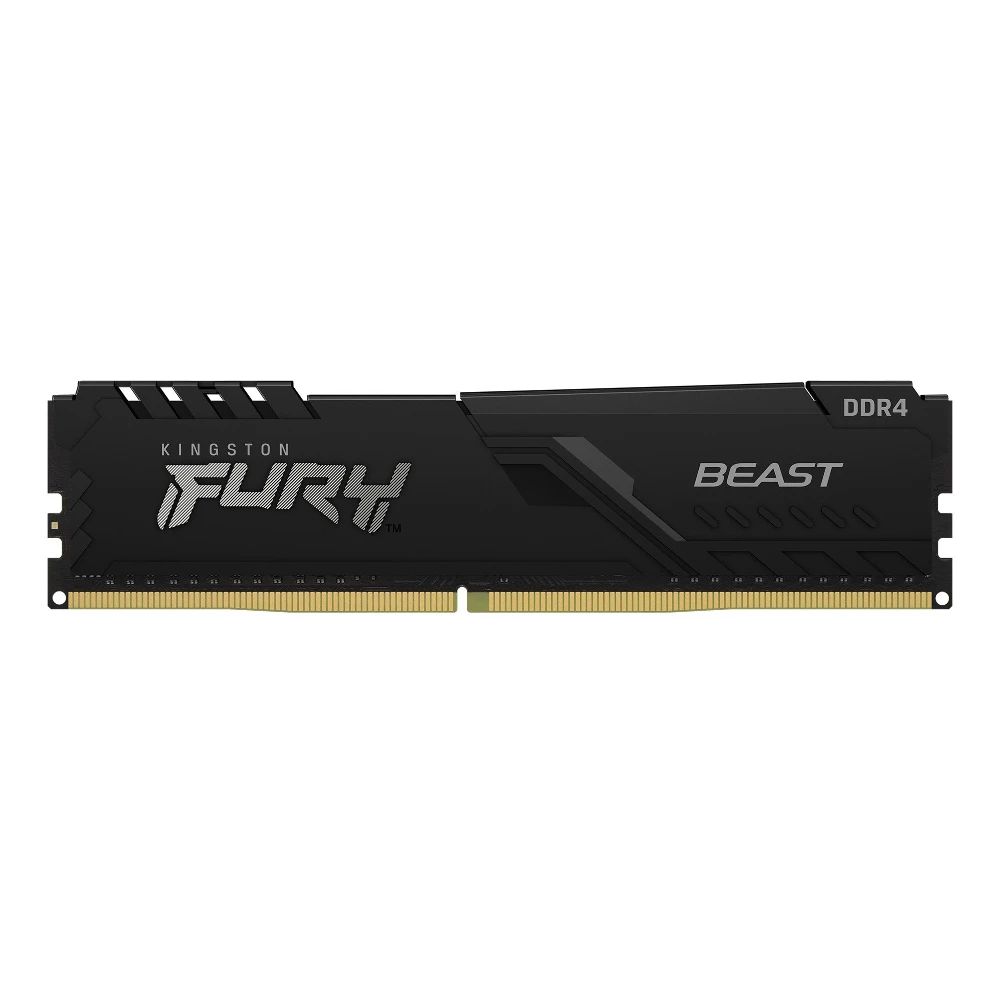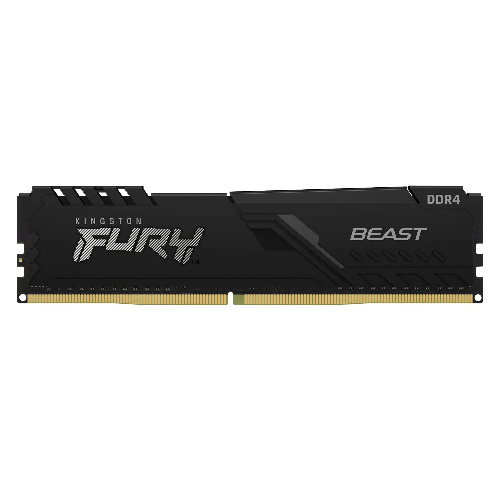 The Kingston FURY™ Beast DDR4 provides a powerful performance boost for gaming, video editing and rendering with speeds up to 3733MHz1. This cost-effective upgrade is available in 2666MHz–3733MHz speeds, CL15–19 latencies, single module capacities of 4GB–32GB, and kit capacities of 8GB–128GB. It features Plug N Play automatic overclocking at 2666MHz1 and is both Intel XMP-ready and ready for AMD Ryzen. FURY Beast DDR4 stays cool with its stylish, low-profile heat spreader.