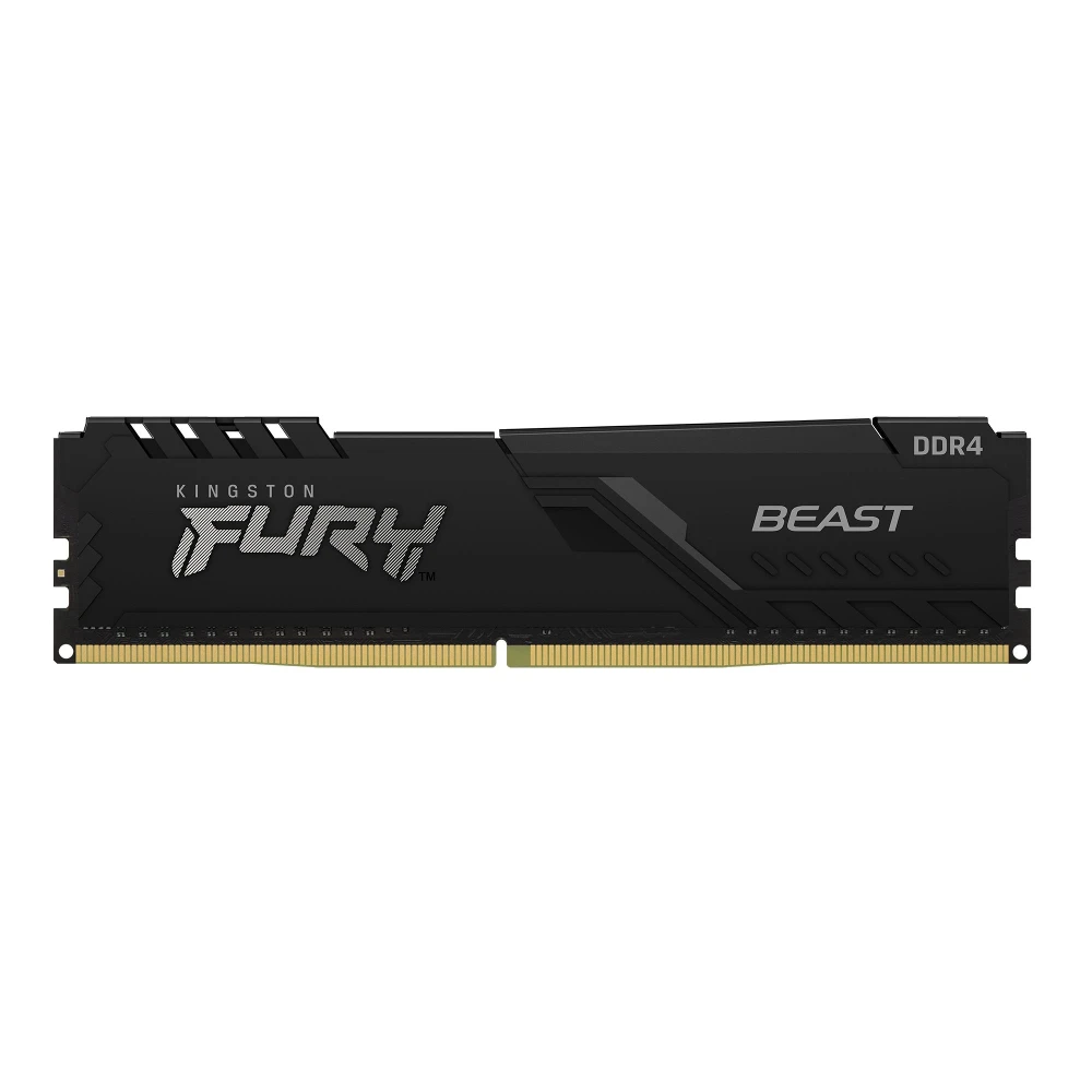The Kingston FURY™ Beast DDR4 provides a powerful performance boost for gaming, video editing and rendering with speeds up to 3733MHz1. This cost-effective upgrade is available in 2666MHz–3733MHz speeds, CL15–19 latencies, single module capacities of 4GB–32GB, and kit capacities of 8GB–128GB. It features Plug N Play automatic overclocking at 2666MHz1 and is both Intel XMP-ready and ready for AMD Ryzen. FURY Beast DDR4 stays cool with its stylish, low-profile heat spreader.