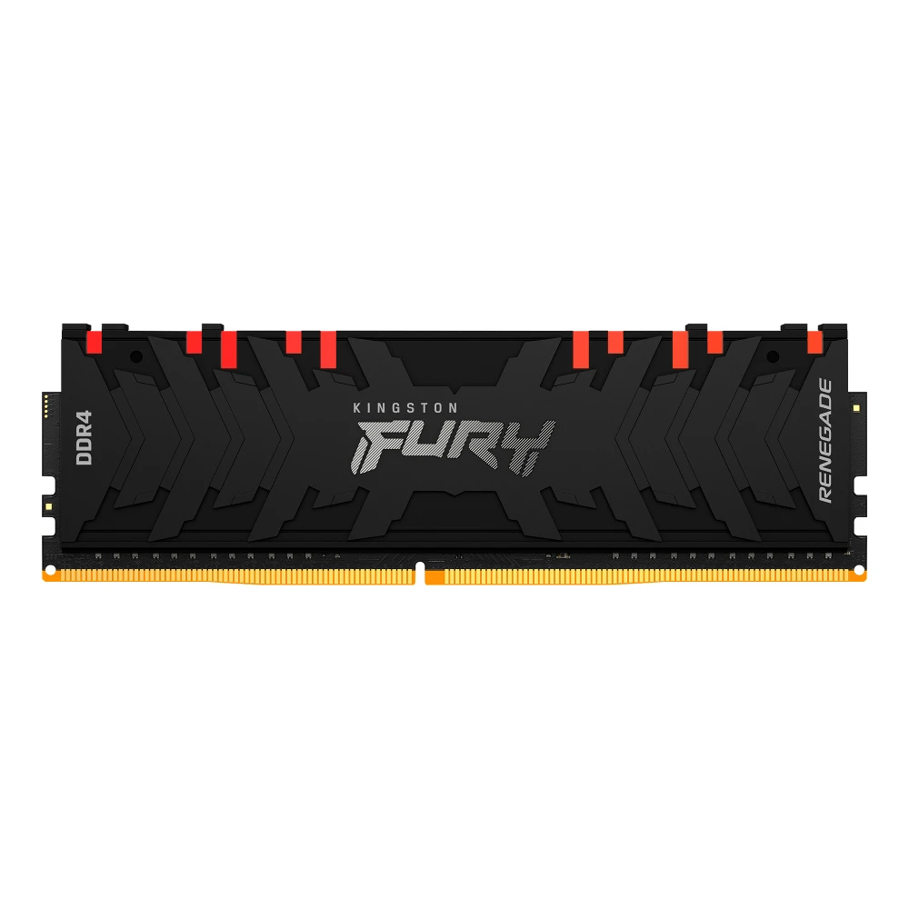Ultra-fast FURY™ Renegade DDR4 RGB1 is the perfect upgrade for the gamer who wants cutting-edge performance and brilliant RGB style in their AMD- or Intel-based system. The dynamic RGB lighting effects utilise Kingston FURY's patented Infrared Sync Technology™ to provide smooth, synchronised lighting effects. Crank up your frame rate, improve your broadcasts and make highlight reel clipping a breeze thanks to speeds of up to 4600MHz2 paired with quick CL15-CL19 latencies. The aggressive, stylish black heat spreader and matching black PCB will allow you to beat the heat and strike fear into the hearts of your foes. It’s available in single module capacities of 8GB-32GB and kits of 2, 4 and 8 with capacities of 16GB-256GB. Renegade DDR4 RGB is Intel XMP certified with profiles optimised for Intel’s latest chipsets – just select the hand-tuned profile in your BIOS and you’re set.