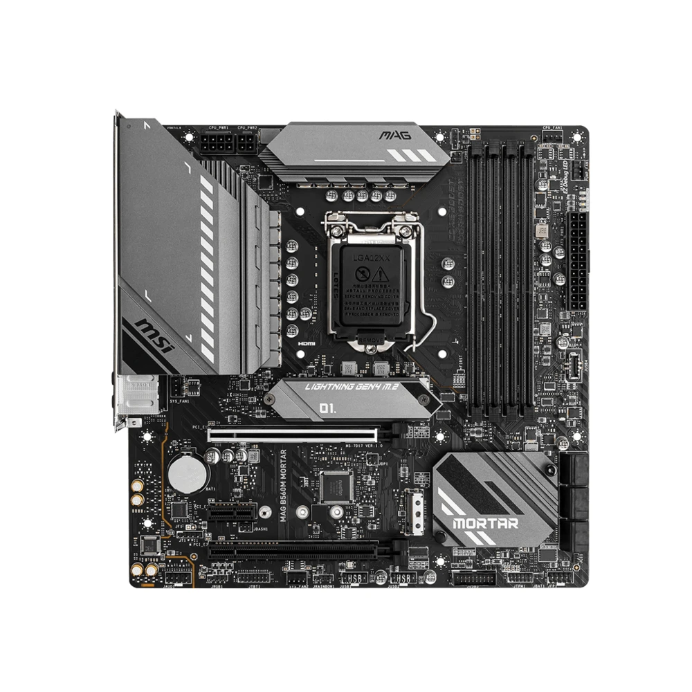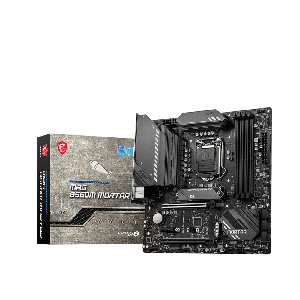 MSI MAG B560M MORTAR. Processor manufacturer: Intel, Processor socket: LGA 1200 (Socket H5), Compatible processor series: Intel® Celeron®, Intel® Core™ i3, Intel® Core™ i5, Intel® Core™ i7, Intel® Core™ i9, Intel® Pentium®. Supported memory types: DDR4-SDRAM, Maximum internal memory: 128 GB, Memory slots type: DIMM. Supported storage drive interfaces: M.2, SATA III, Supported storage drive types: HDD & SSD. Parallel processing technology support: 2-Way CrossFireX. Ethernet interface type: 2.5 Gigabit Ethernet, LAN controller: Realtek RTL8125B