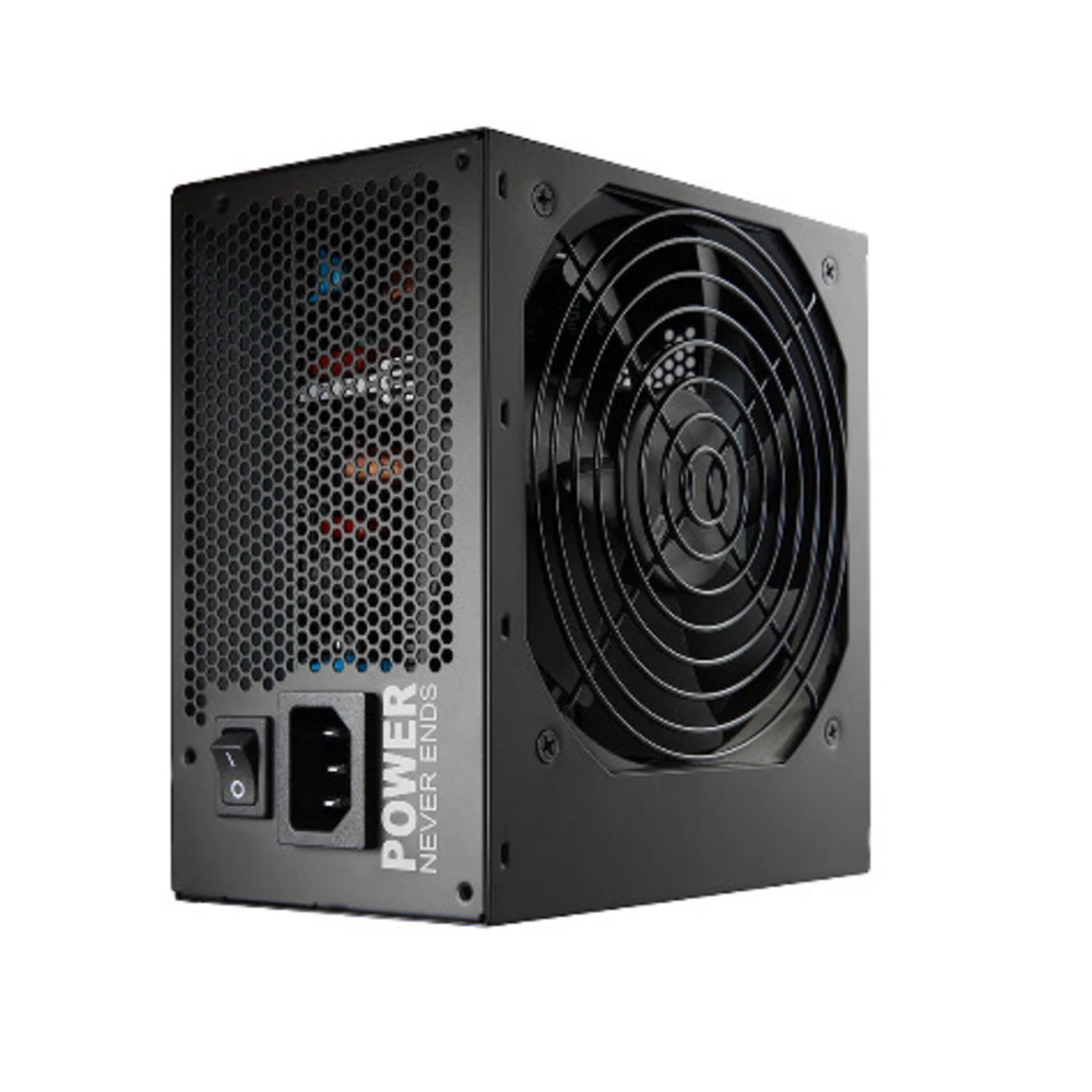 FSP HK-500. Total power: 500 W, AC input voltage: 200 - 240 V, AC input frequency: 50 - 60 Hz. Motherboard power connector: 20+4 pin ATX, Cabling type: Non-Modular. Purpose: PC, Power supply unit (PSU) form factor: ATX, 80 PLUS certification: 80 PLUS. Product colour: Black, Cooling type: Active, Number of fans: 1 fan(s). Width: 150 mm, Depth: 140 mm, Height: 86 mm
