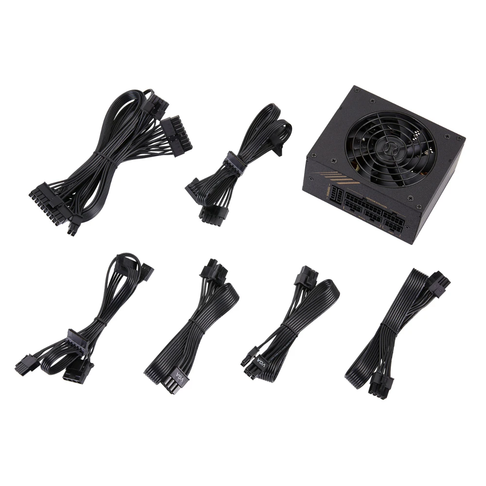 650W, 80 PLUS Gold, SFX12V, 92mm FSP DAGGER PRO 650W. Total power: 650 W, AC input voltage: 100 - 240 V, AC input frequency: 50 - 60 Hz. Motherboard power connector: 20+4 pin ATX, CPU power cable length: 85 cm, Cabling type: Fully-Modular. Purpose: PC, Power supply unit (PSU) form factor: SFX, 80 PLUS certification: 80 PLUS Gold. Product colour: Black, Cooling type: Active, Fan diameter: 9.2 cm. Cables included: CPU, PCIe, Peripheral (Molex), SATA The FSP DAGGER PRO features with standard SFX size and included ATX adapter bracket to help users easily install an SFX power supply into an ATX, Micro-ATX or Mini-ITX chassis. With this compact size but comes with powerful output, especially the +12V single-rail offers VGA cards full power individually and to avoid any overloading conditions. Besides, the fully modular and all black cable design save your system an optimal airflow space and easy to make a cable management for a polished look.