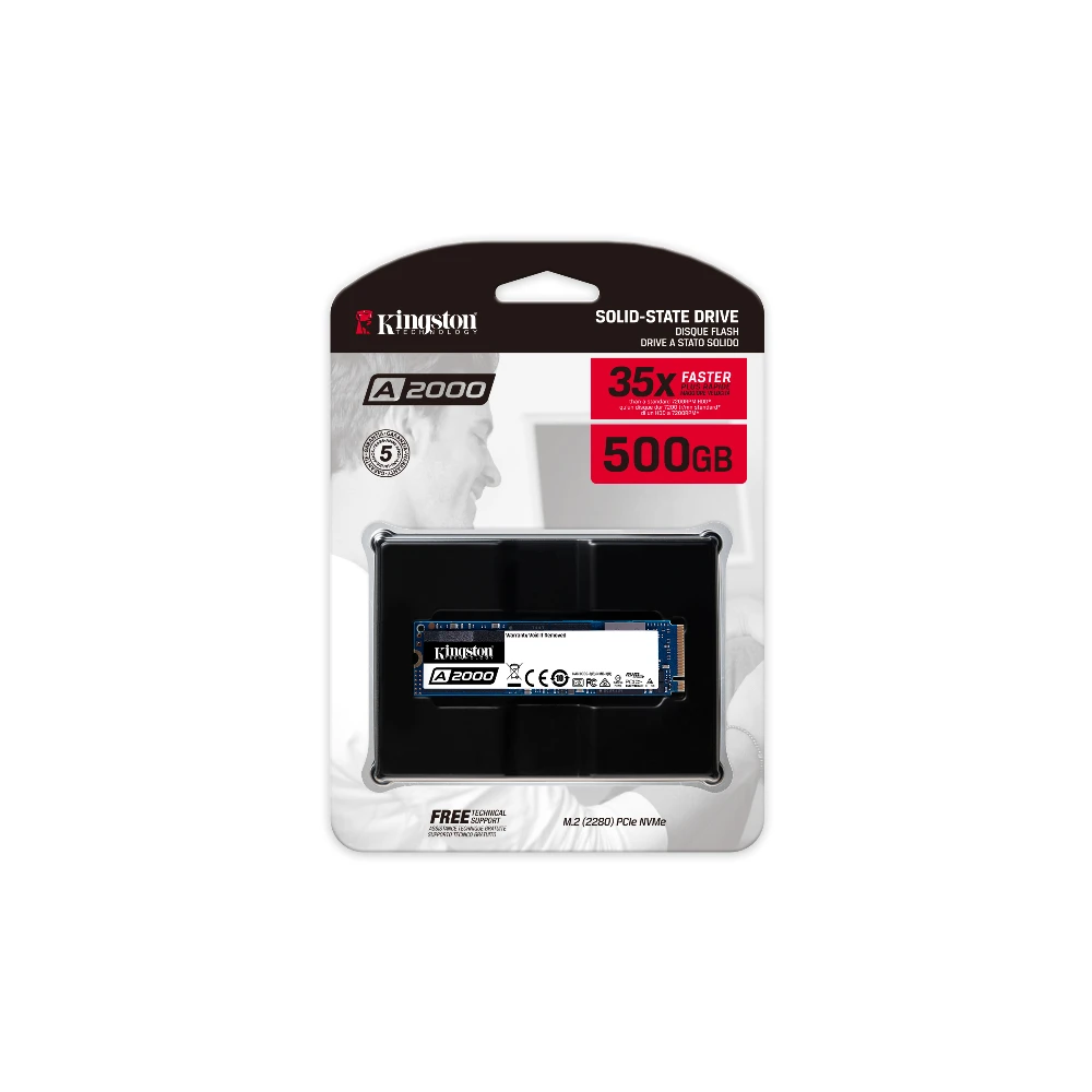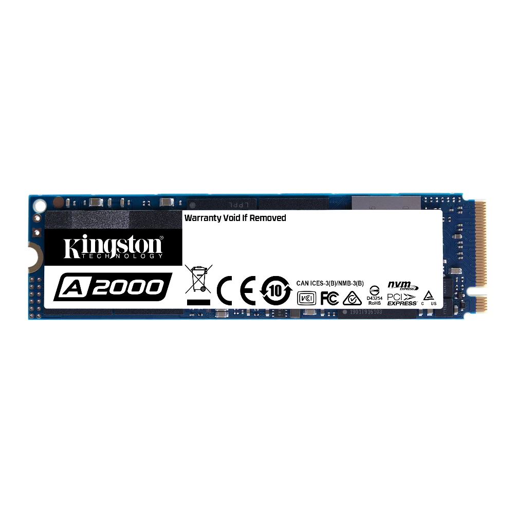 Kingston Technology A2000. SSD capacity: 500 GB, SSD form factor: M.2, Read speed: 2200 MB/s, Write speed: 2000 MB/s, Component for: PC/Laptop
