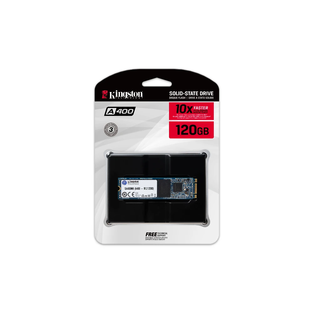Kingston Technology A400. SSD capacity: 120 GB, SSD form factor: M.2, Read speed: 500 MB/s, Write speed: 320 MB/s, Data transfer rate: 6 Gbit/s, Component for: PC/Laptop