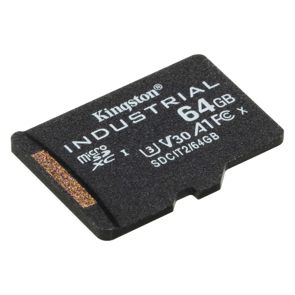 Kingston Technology Industrial. Capacity: 64 GB, Flash card type: MicroSDXC, Flash memory class: Class 10, Internal memory type: UHS-I, UHS Speed Class: Class 3 (U3), Video Speed Class: V30. Product colour: Black