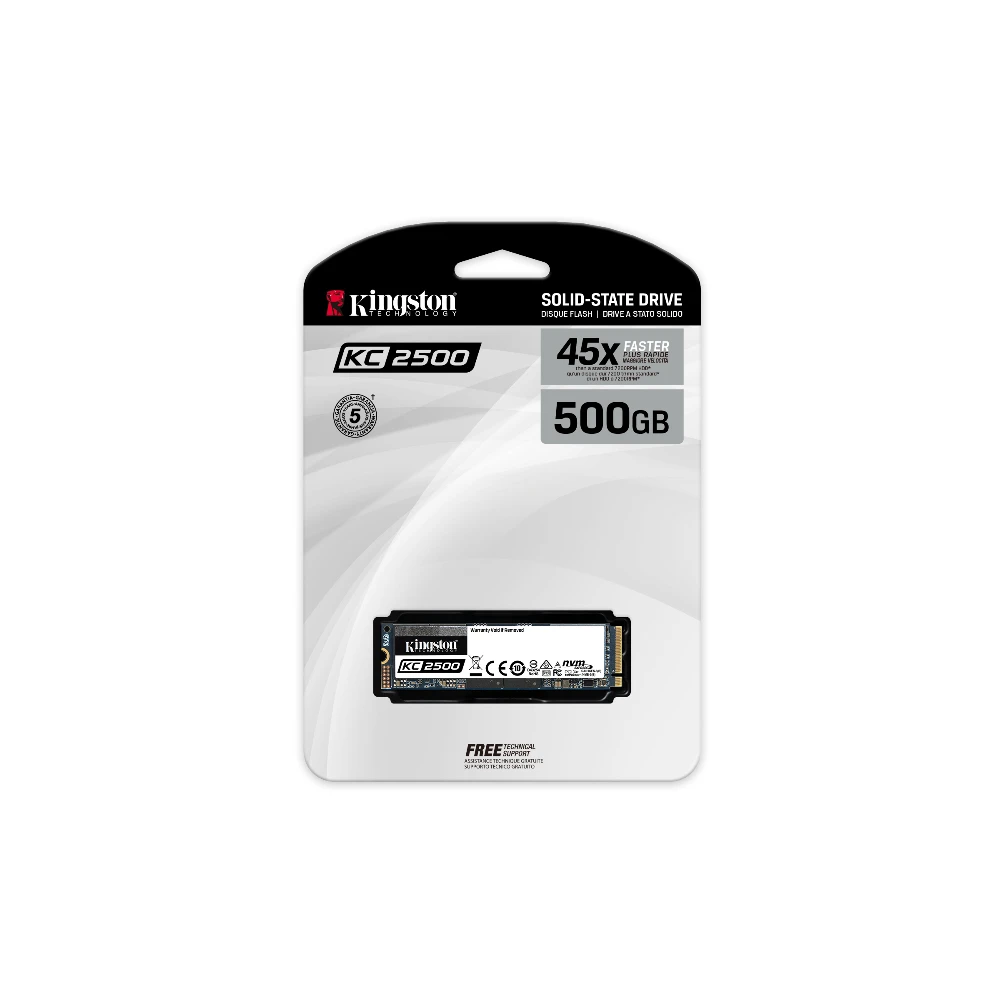 Kingston Technology KC2500. SSD capacity: 500 GB, SSD form factor: M.2, Read speed: 3500 MB/s, Write speed: 2500 MB/s, Component for: PC/Laptop
