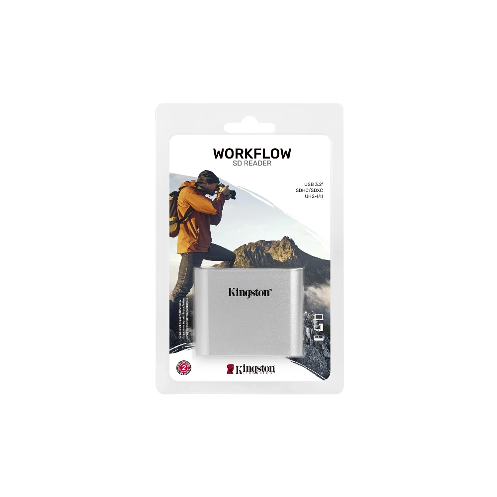 Kingston Technology USB3.2 Gen1 Workflow Dual-Slot SDHC/SDXC UHS-II Card Reader. Compatible memory cards: SD, SDHC, SDXC. Product colour: Black, Silver, Country of origin: China. Windows operating systems supported: Windows 11 Enterprise x64, Windows 10, Windows 11 Home, Windows 10 Education, Windows 11 Pro,..., Mac operating systems supported: Mac OS X 13.0 Ventura, Mac OS X 10.15 Catalina, Mac OS X 14.0 Sonoma, Mac OS X 10.15.3 Catalina,.... Width: 16.9 mm, Depth: 62.9 mm, Height: 50 mm. Package width: 101.6 mm, Package depth: 39.9 mm, Package height: 177.8 mm